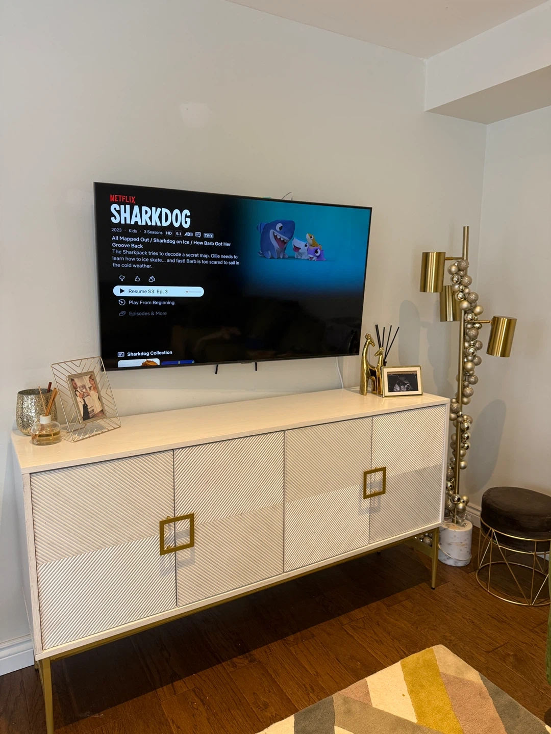 White Buffet Cabinet with Gold Accents