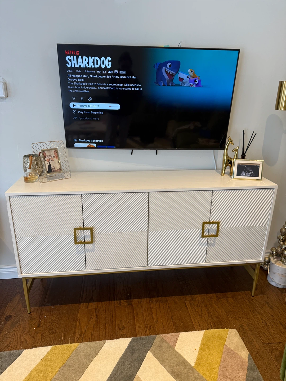 White Buffet Cabinet with Gold Accents