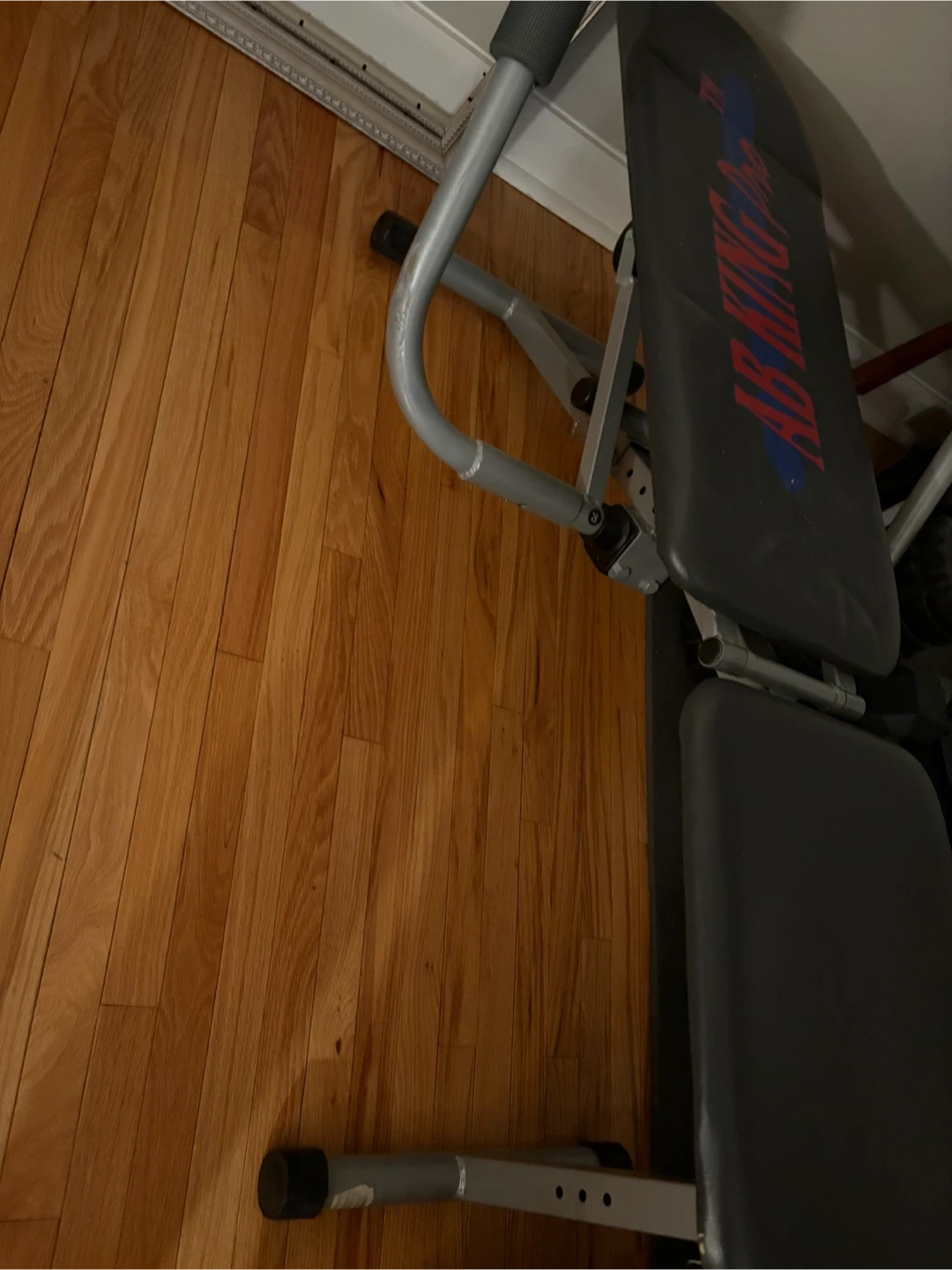 This is an AB King Pro exercise machine. It's designed for core workouts and has padded grips. The adjustable seat provides comfort during use.