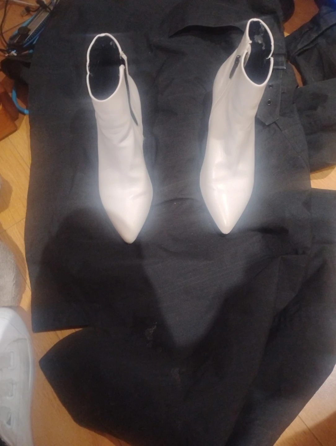 These are white heeled ankle boots from Reaction Kenneth Cole. They have a pointed toe and side zippers. The lining is textile and the outsole is man-made. These boots would be great for dressing up an outfit!