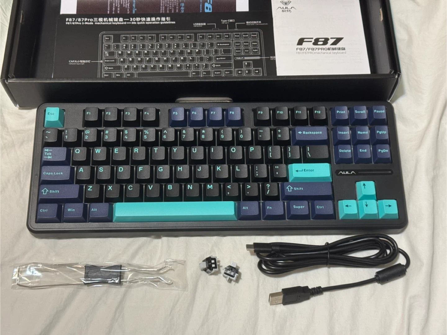 This is the AULA F87Pro mechanical keyboard.
