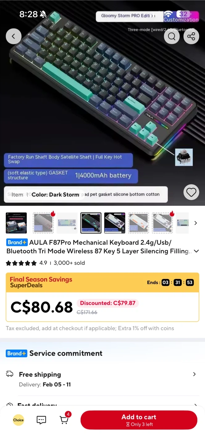 AULA F87pro Keyboard (graywood v4 switch)