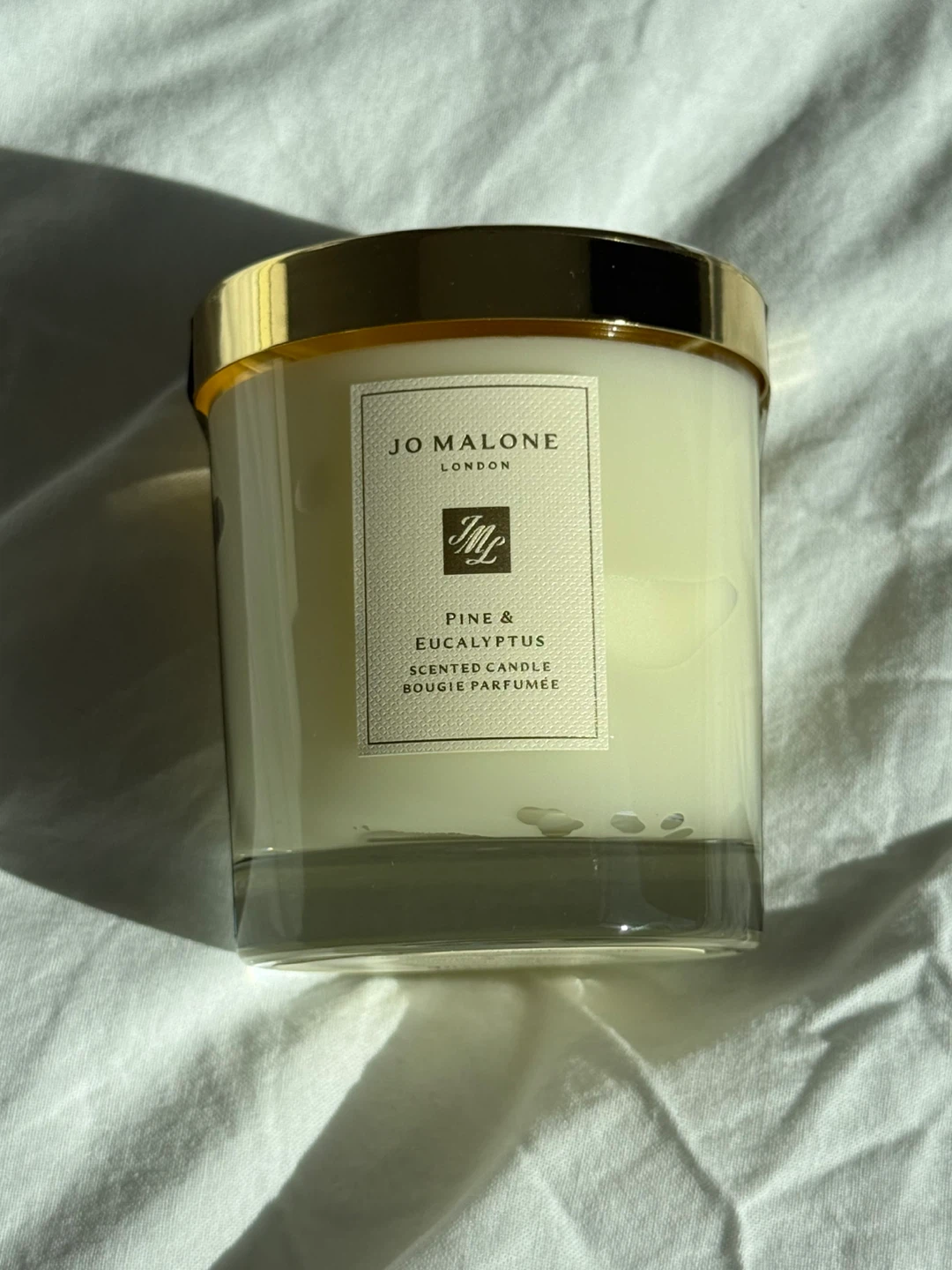 Brand new Jo Malone limited edition Pine & Eucalyptus scented candle. It's a lovely candle that would be perfect for creating a cozy atmosphere in your home. The candle is in excellent condition and ready to bring a touch of luxury to your space