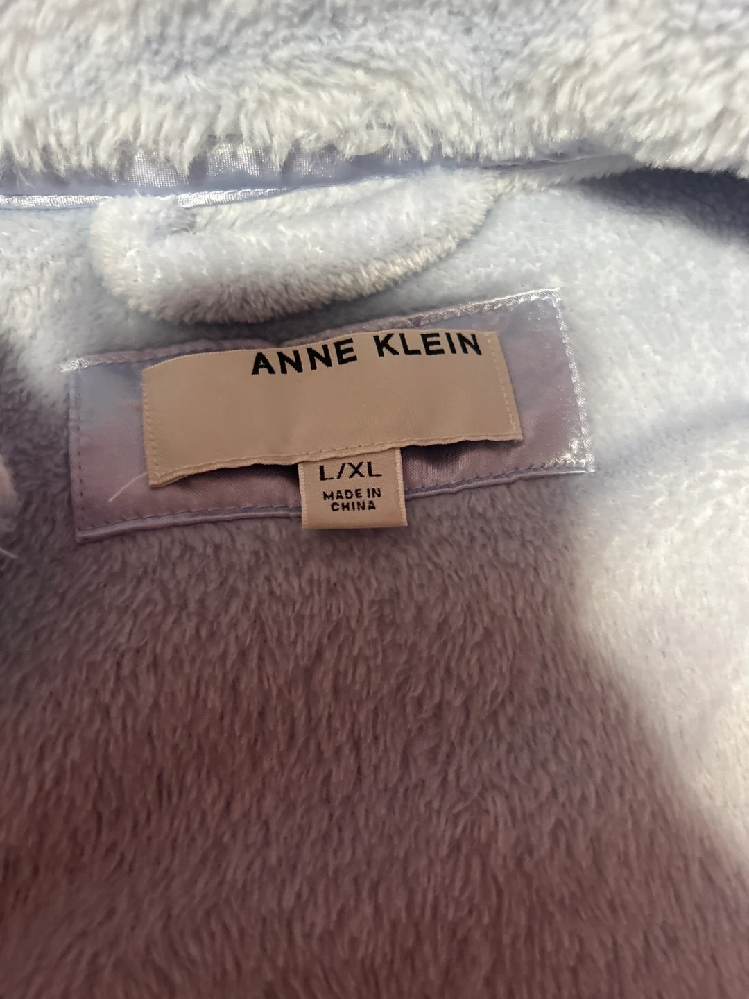 Selling a cozy Anne Klein robe in size L/XL! It's a lovely light blue and made of a soft, plush material. Perfect for lounging around the house on chilly days