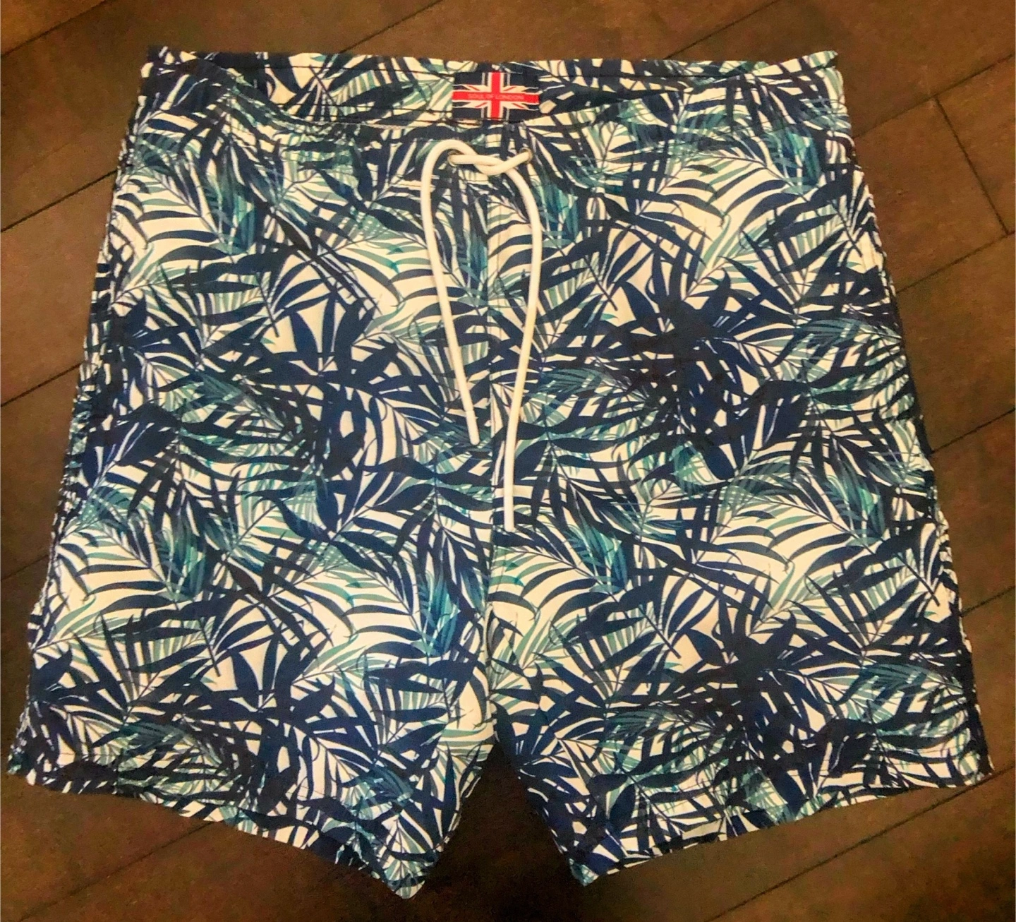Selling a pair of Soul of London swim trunks in size small. They feature a cool leaf pattern, perfect for the beach or pool!