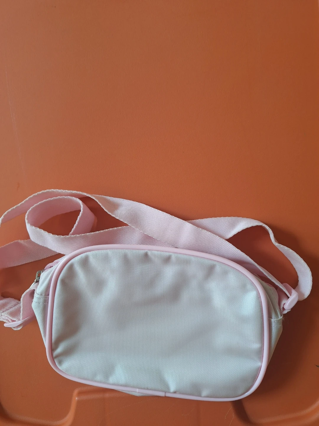 This is a cute pink shoulder bag featuring Little Twin Stars characters. It has a zipper closure and an adjustable strap for comfort. It's perfect for carrying small essentials!