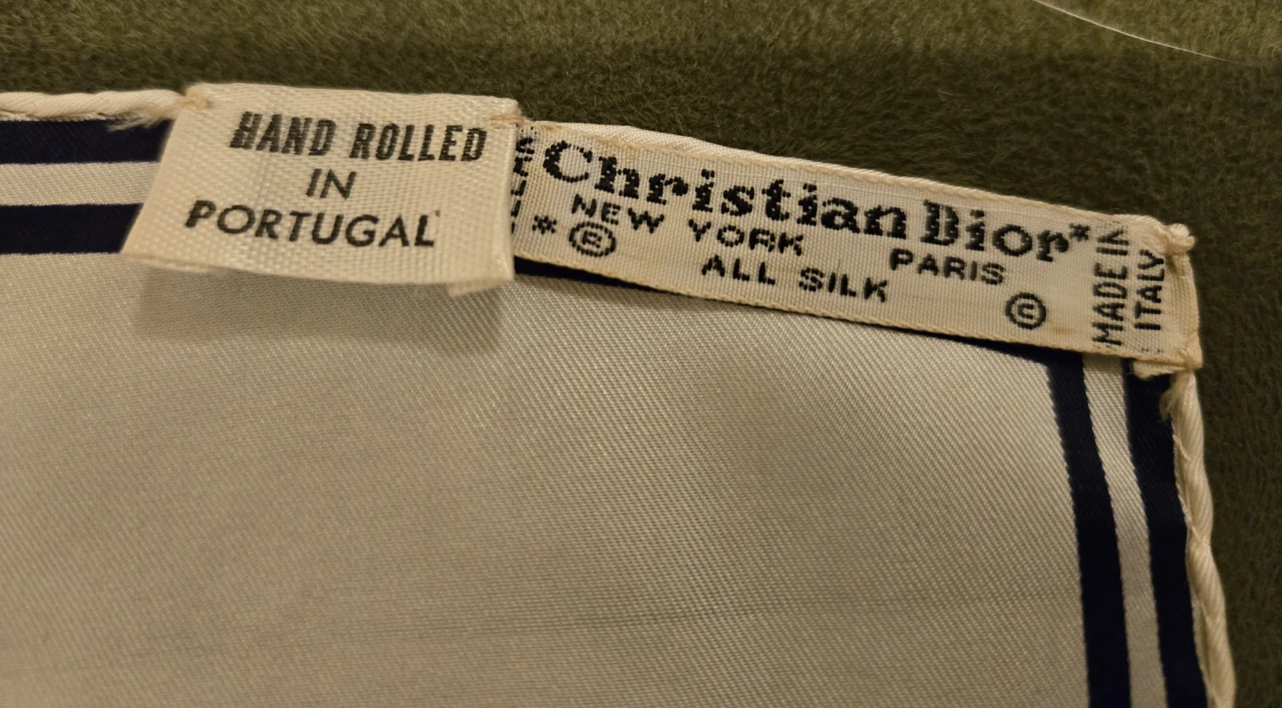 This Christian Dior scarf is made of 100% silk. It's hand-rolled in Portugal and was made in Italy. A classic accessory for any wardrobe! Size 47cm x 47cm
