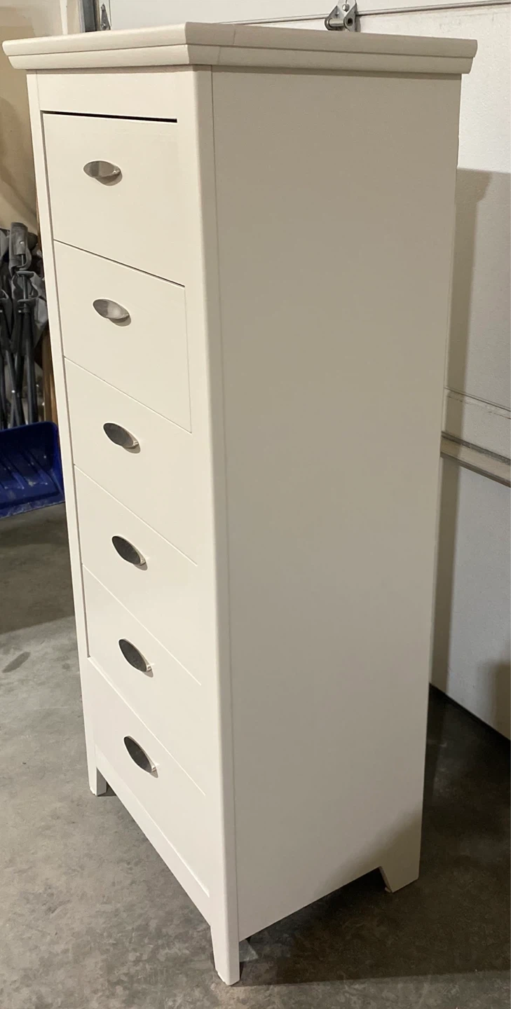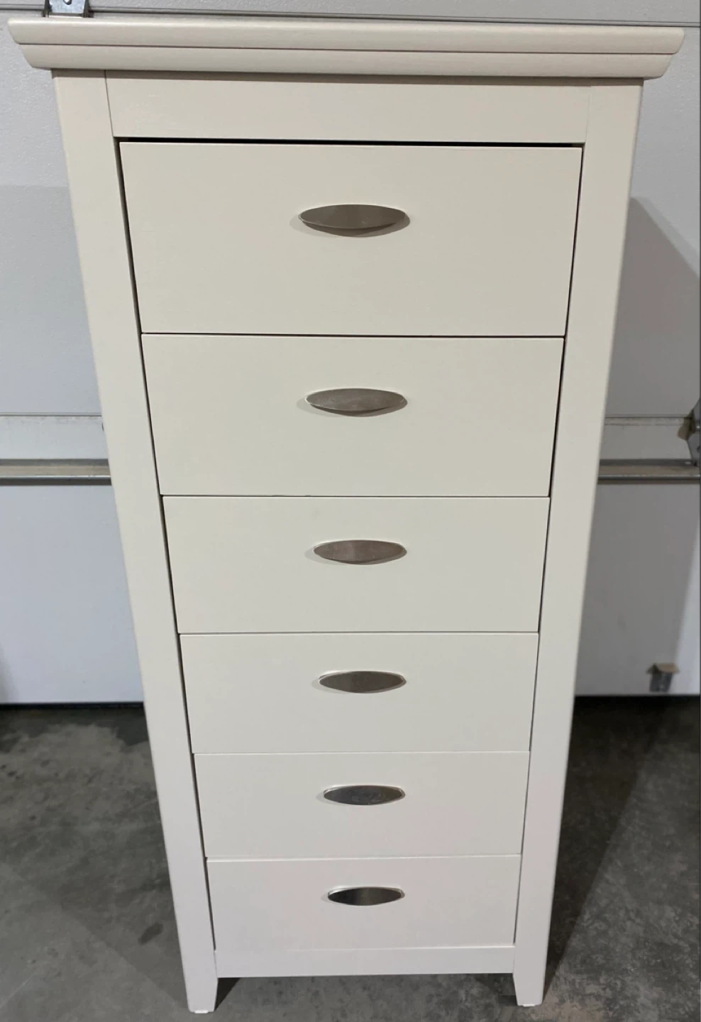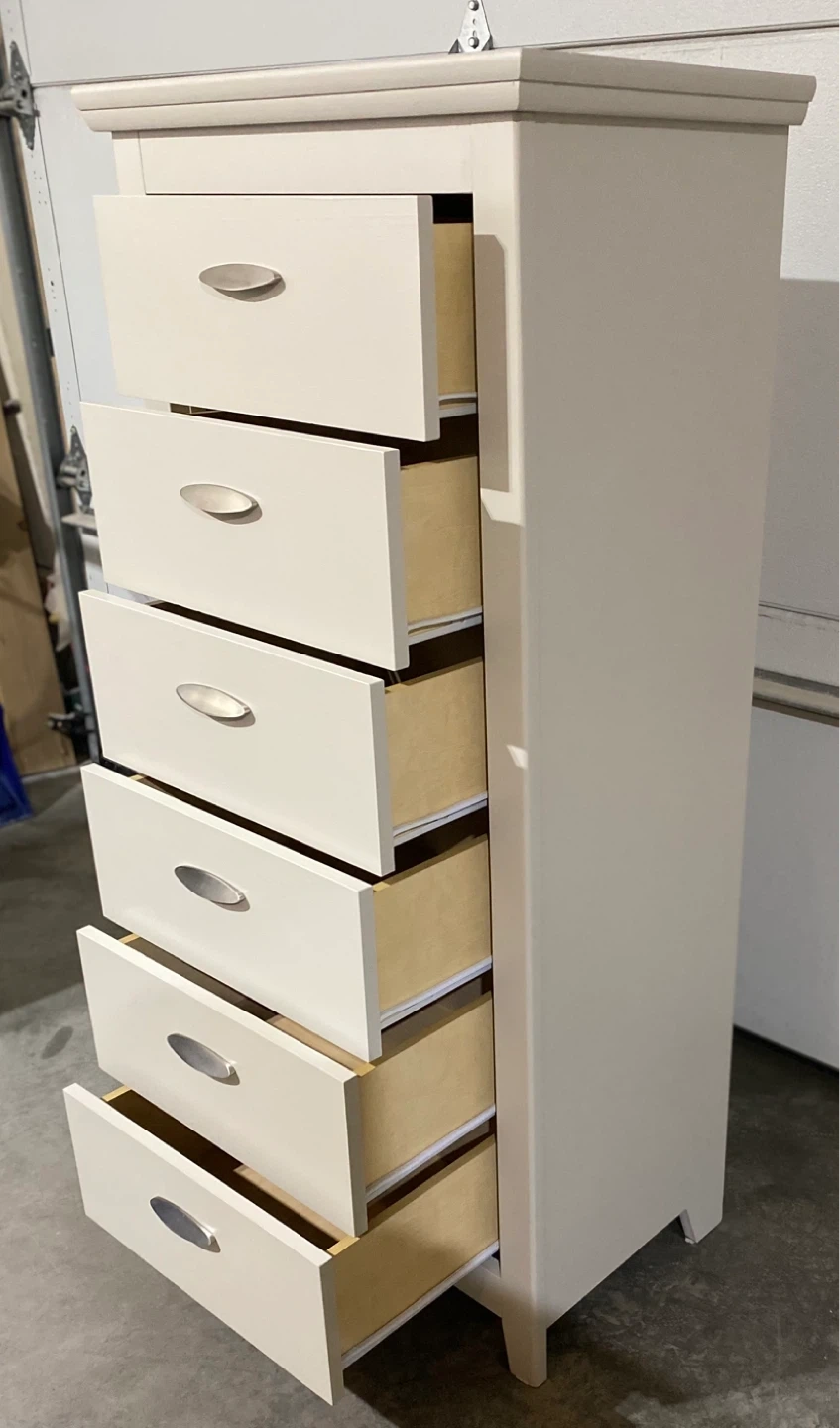 Lovely tall lingerie dresser featuring 6 drawers on metal glides easy open/ close