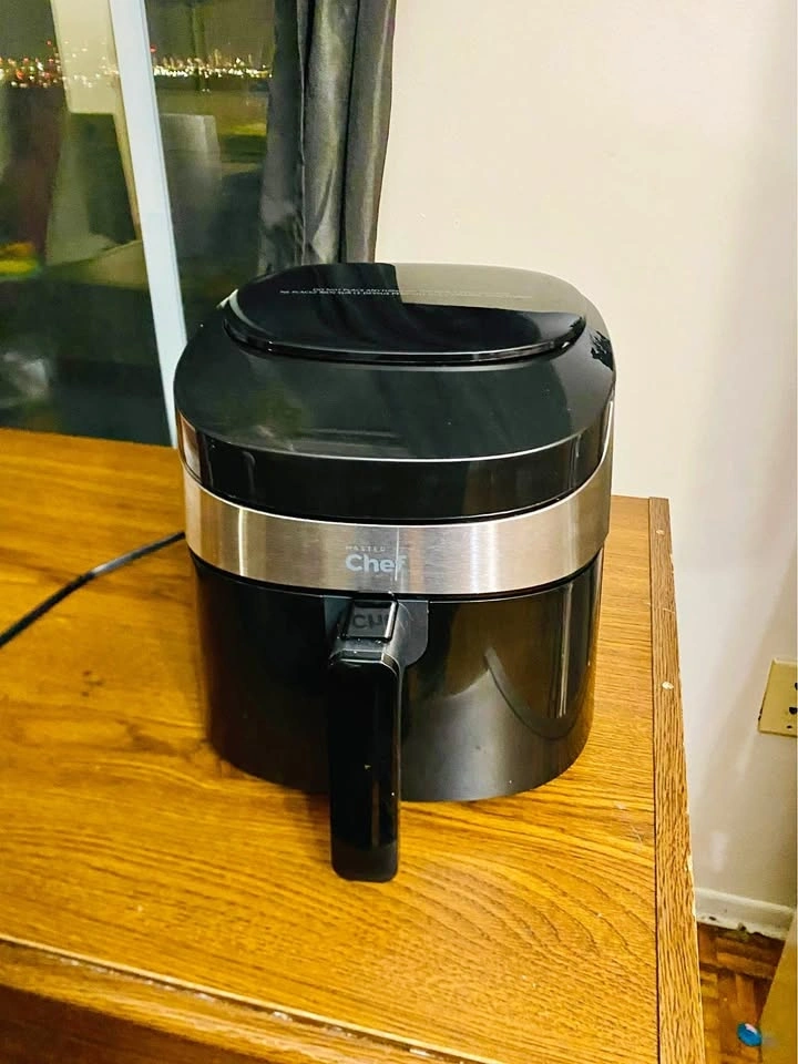 Selling my Master Chef Digital Air Fryer as I am leaving the country. This unit is in immaculate, "used like new" condition. It has only been used two or three times specifically to make French fries for my kids, so it is extremely clean and works perfectly. Key Features: Sleek Design: Modern black finish with a stylish stainless steel accent band. Digital Interface: Easy-to-use touch controls located on the top for precise temperature and timing. Large Capacity: Spacious basket perfect for family snacks, sides, or main dishes. Healthy Cooking: Get that crispy "fried" texture using little to no oil. Easy Cleanup: Non-stick basket makes washing up a breeze. Condition: 10/10. No scratches or dents. Pickup only.