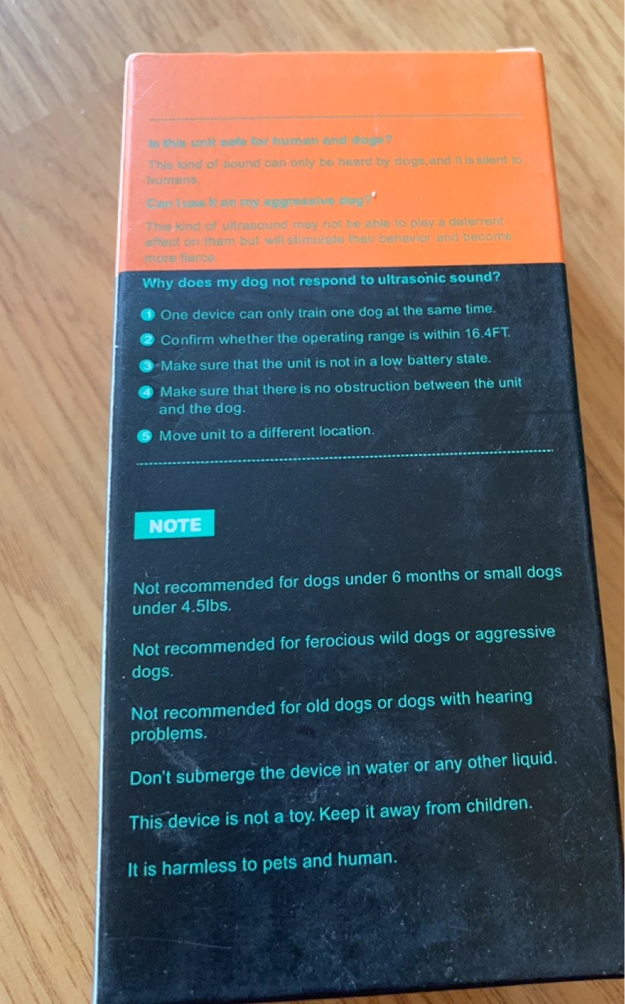 This is a handheld ultrasonic dog trainer. It's designed to help train dogs using sound. This device is not recommended for dogs under 6 months or small dogs under 4.5lbs.