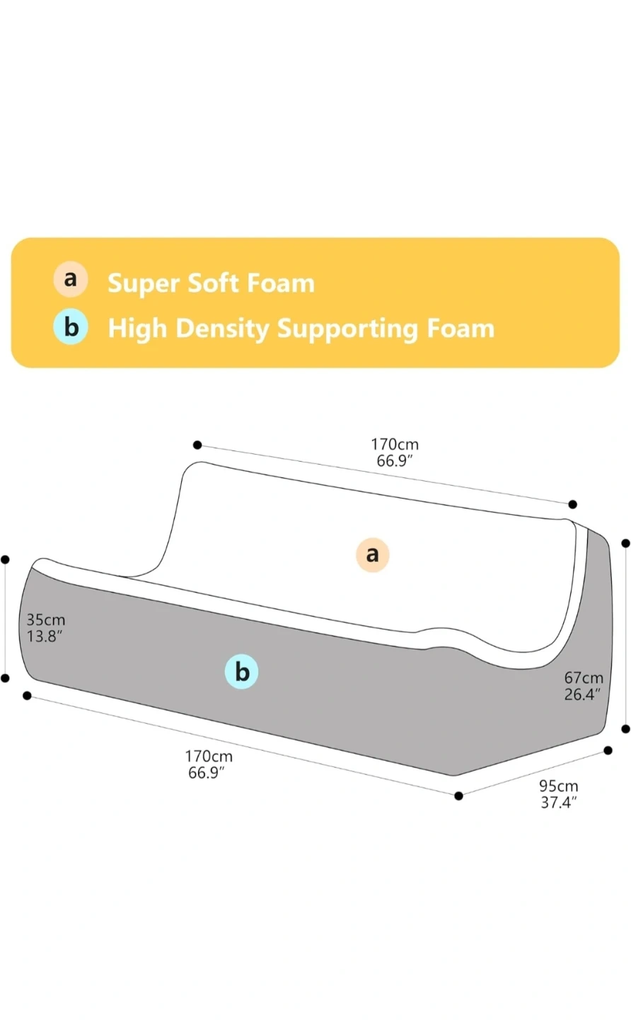 This white futon sofa bed features super soft foam on top and high density supporting foam below. It's 170cm (66.9") long, 67cm (26.4") high, and 95cm (37.4") deep when fully extended. The seat height is 35cm (13.8").
