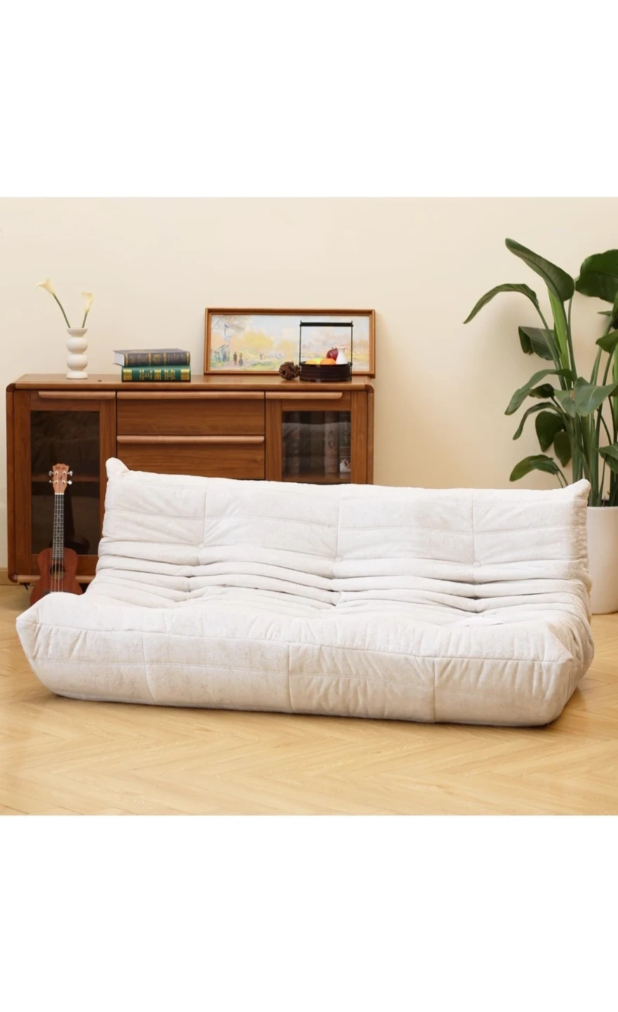 This white futon sofa bed features super soft foam on top and high density supporting foam below. It's 170cm (66.9") long, 67cm (26.4") high, and 95cm (37.4") deep when fully extended. The seat height is 35cm (13.8").
