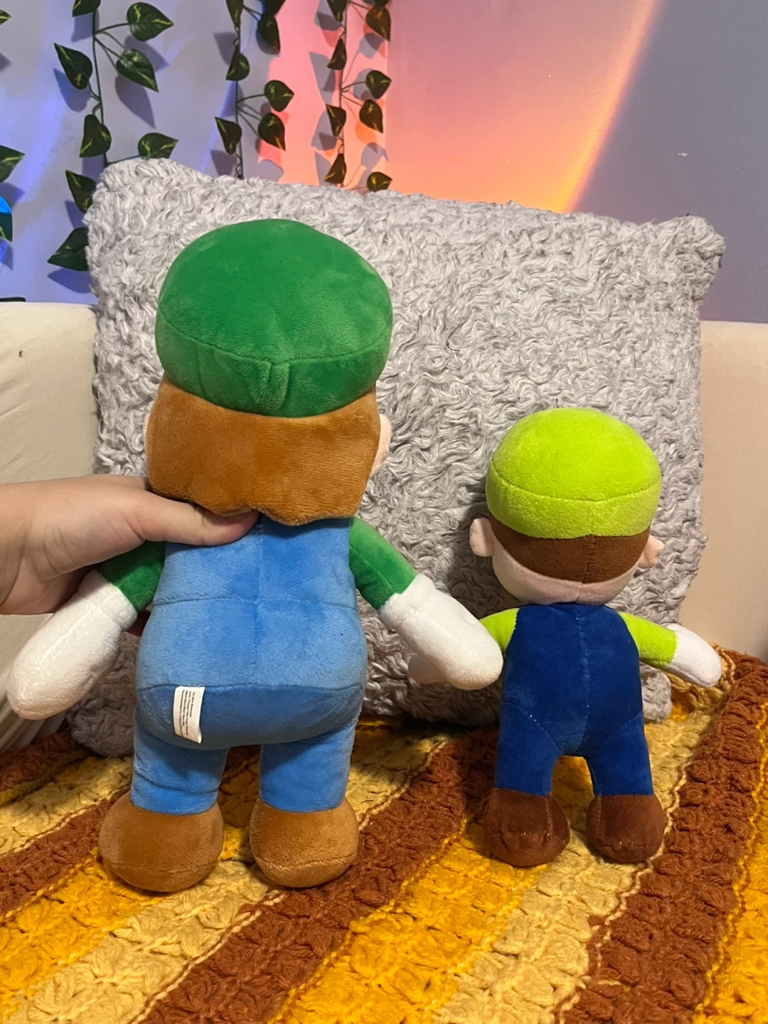Selling a set of two Luigi plush toys! One is a larger, classic Luigi, and the other is a smaller version with a light on his cap. Both are in great shape and ready for a new home!