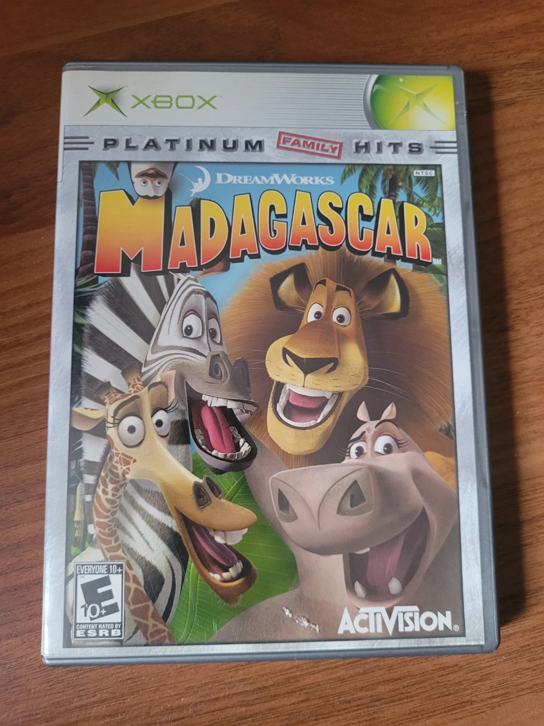 Classic Xbox game Madagascar Platinum Family Hits. Has Alex, Marty, Melman, and Gloria on a wild adventure to Madagascar. Play as your favorite characters and penguins. Adventure through action-packed chapters. Game is 1 player, uses 13 blocks memory unit, and has in-game Dolby Digital. ESRB rating Everyone 10+, cartoon violence, crude humor.