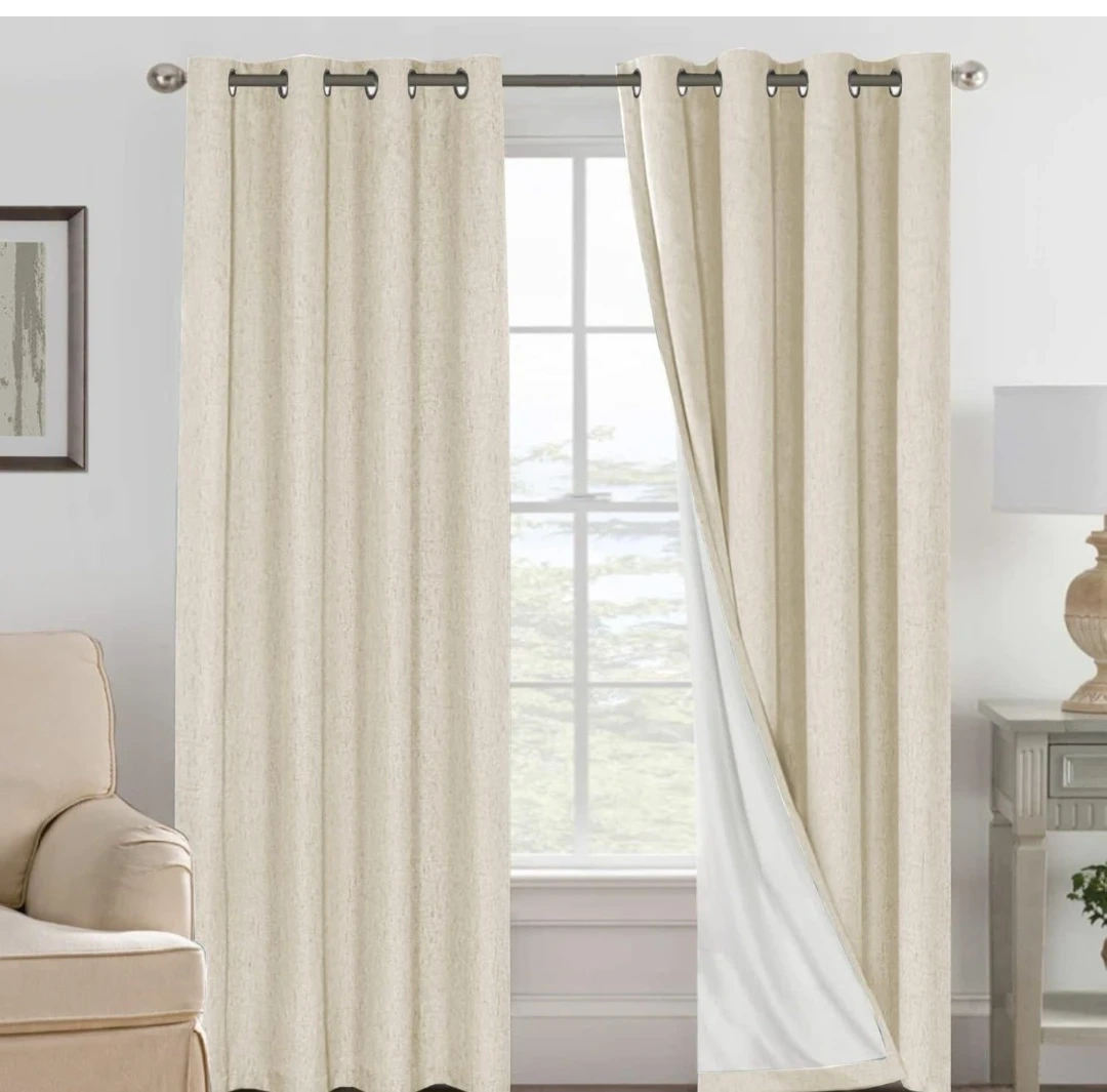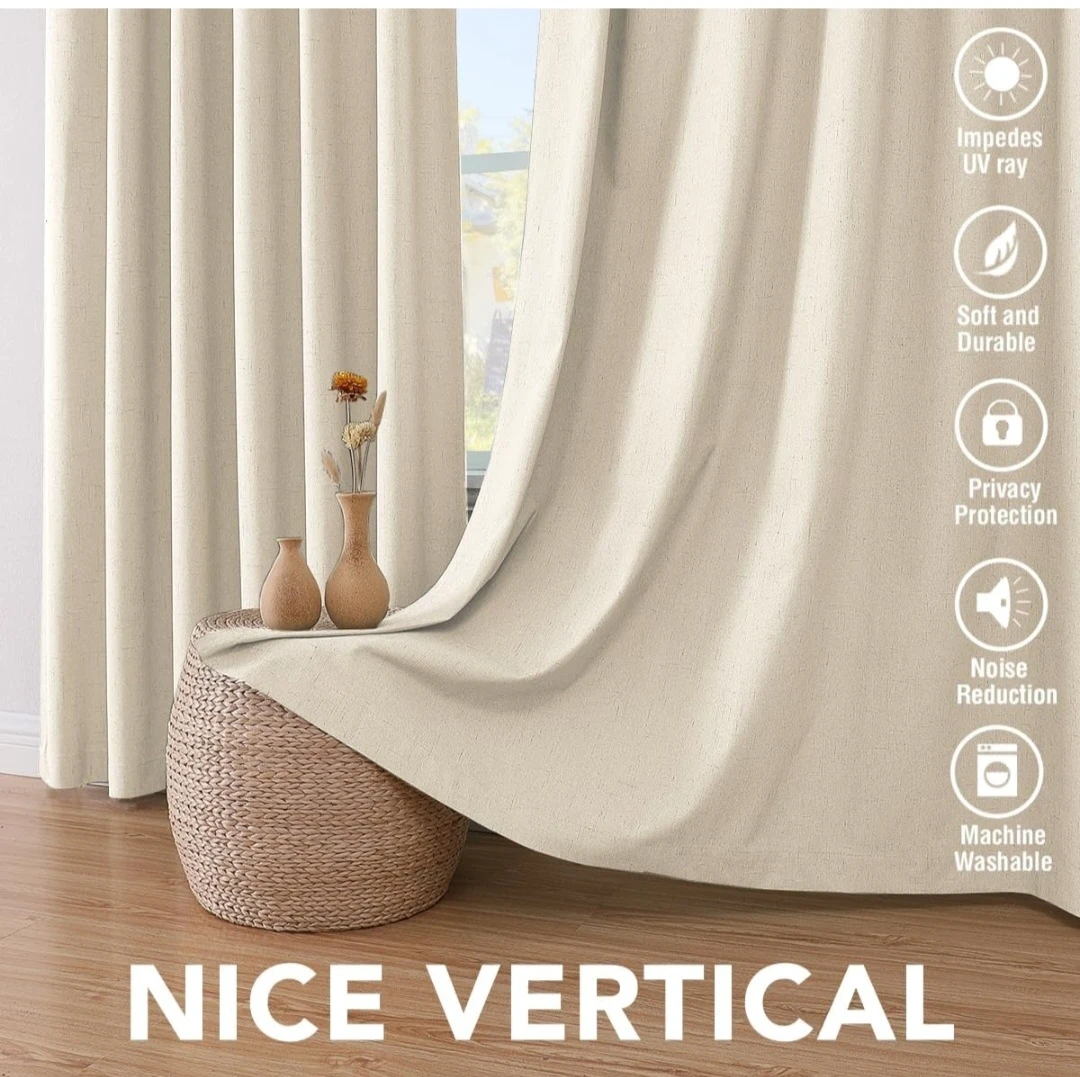 These curtains offer privacy protection and noise reduction. They're made from soft and durable faux linen textured fabric. The anti-rust grommets are 1.6 inches. Easy to machine wash!. 52Wxl x 96 L inches (2 Panels).