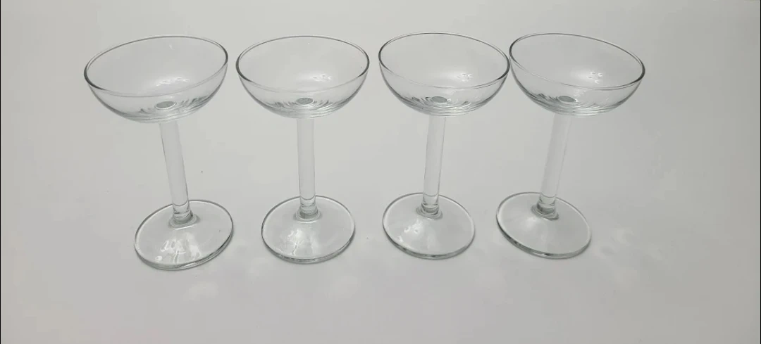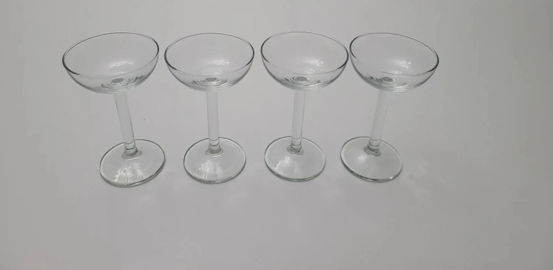 Selling a set of four coupe cocktail glasses. They're perfect for serving champagne, cocktails, or any other celebratory drink. They're in great condition and ready to add a touch of elegance to your next gathering
