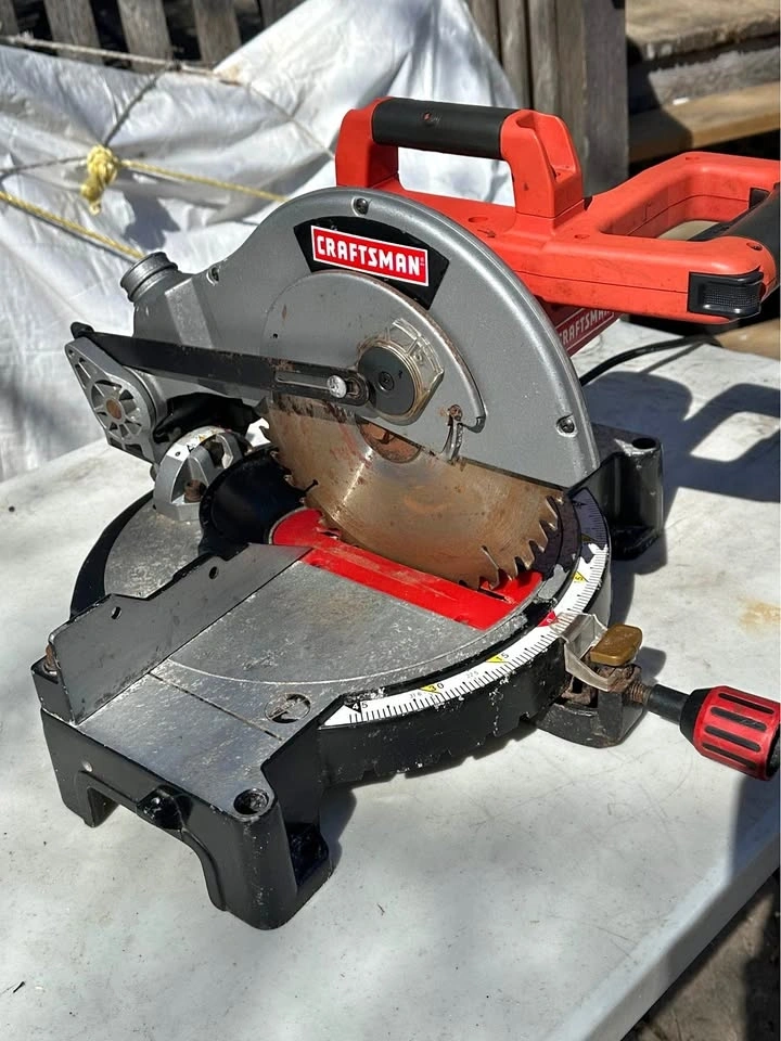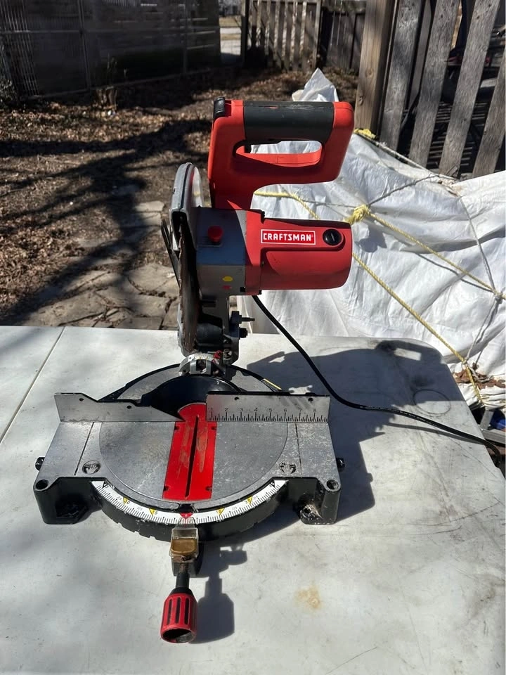 This is a used Makita LS1040 10-inch compound mitre saw. It's in good working condition. Perfect for various cutting tasks. Let me know if you have any questions!