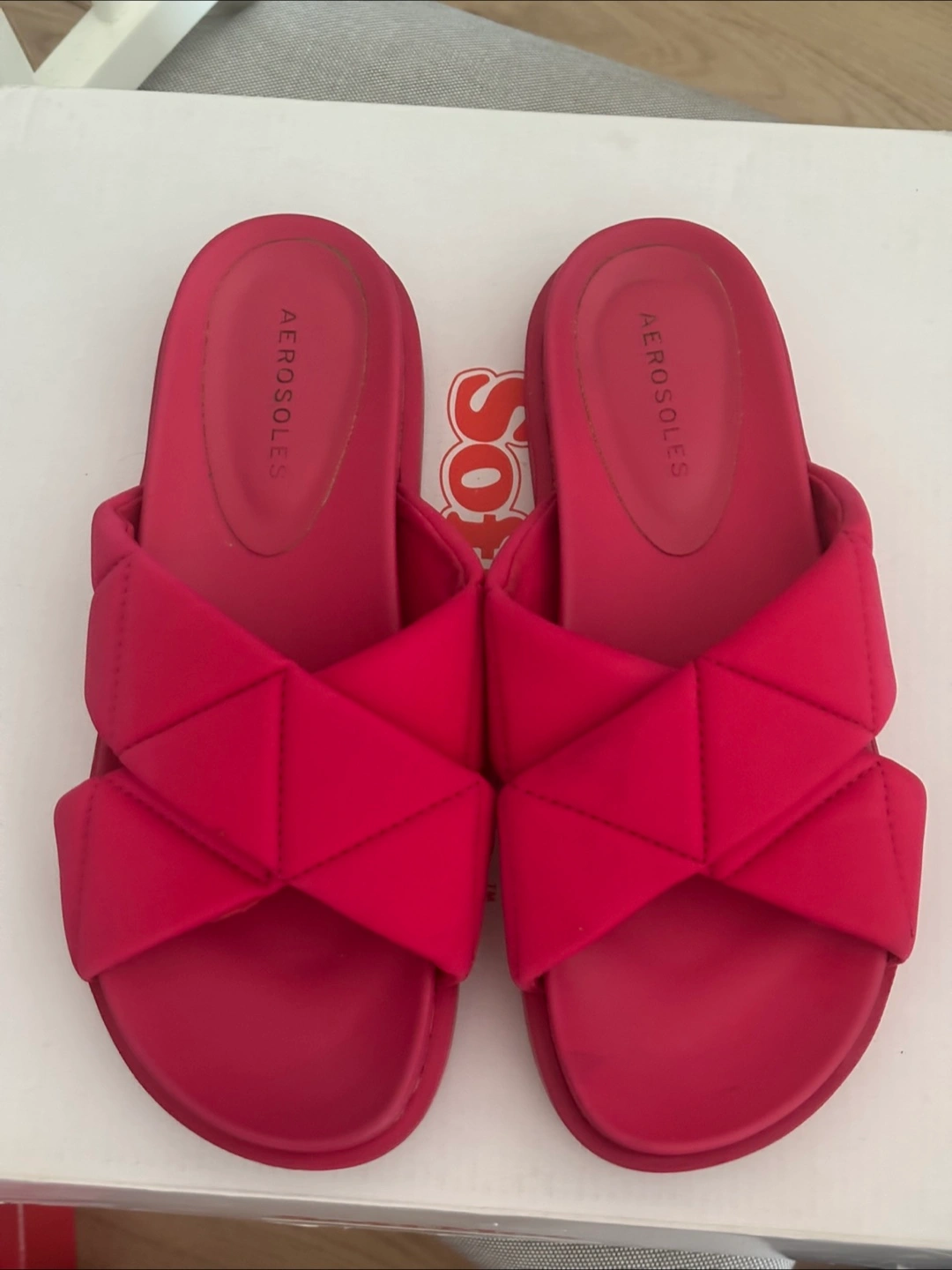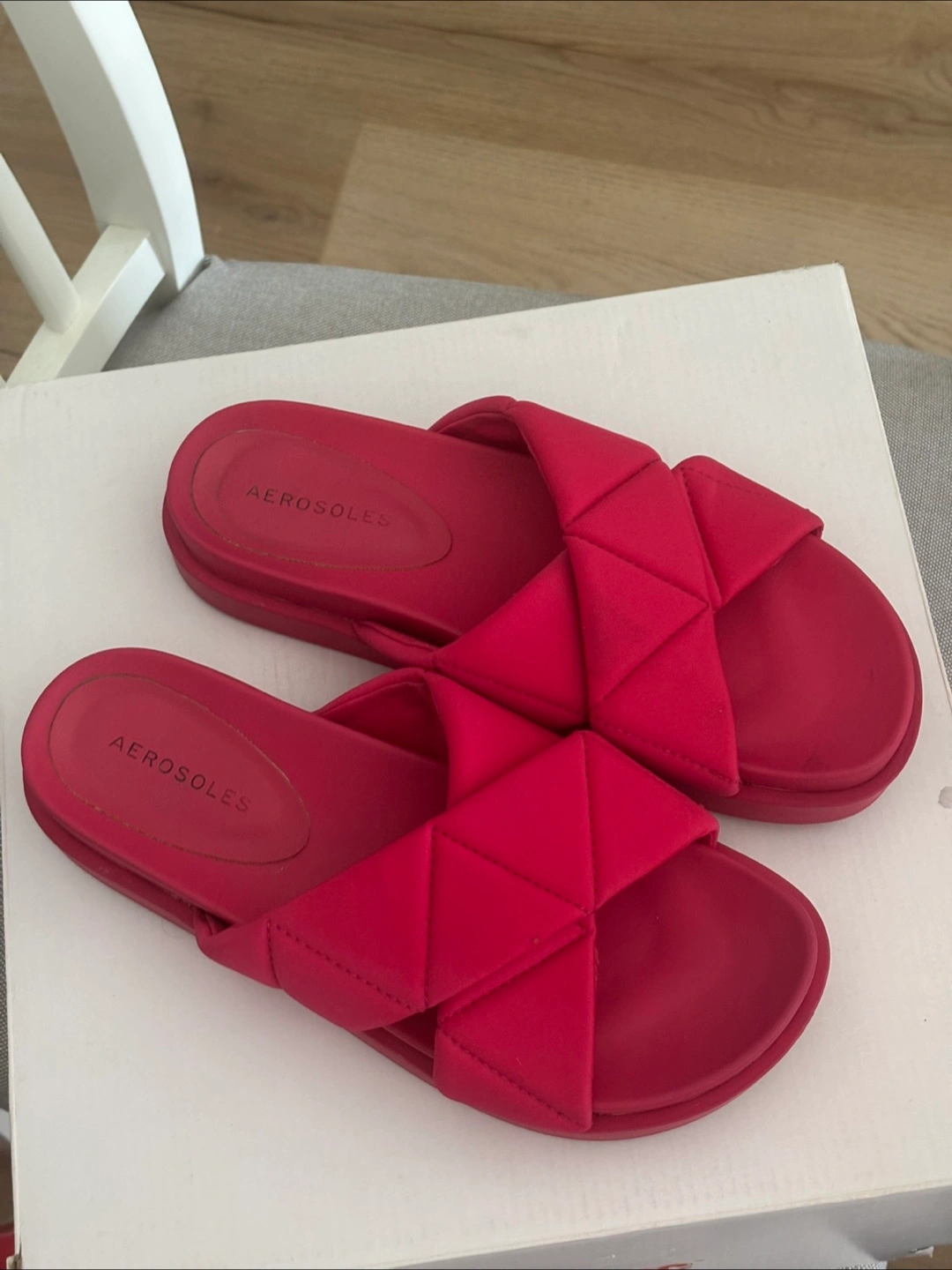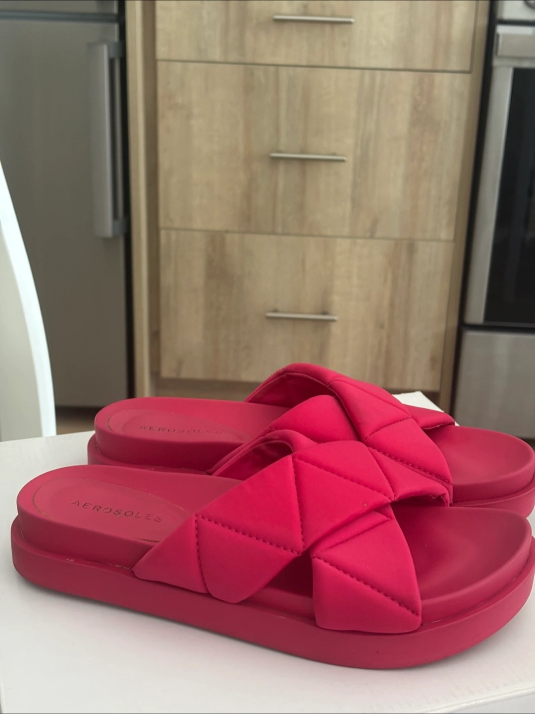 Cute red slides from Aerosoles! These are a size 8 and are in great condition. They feature a unique woven design across the top. Perfect for summer!