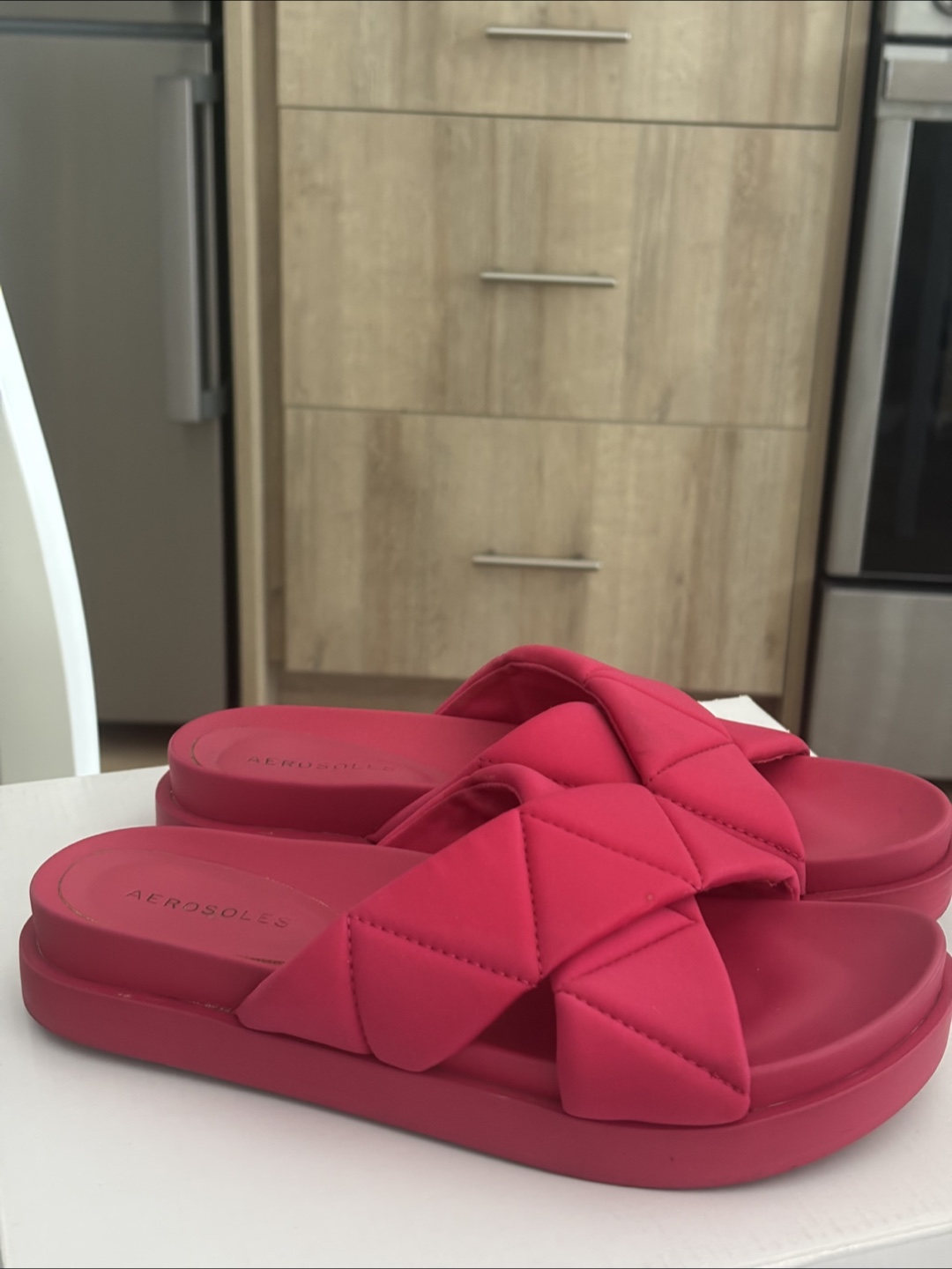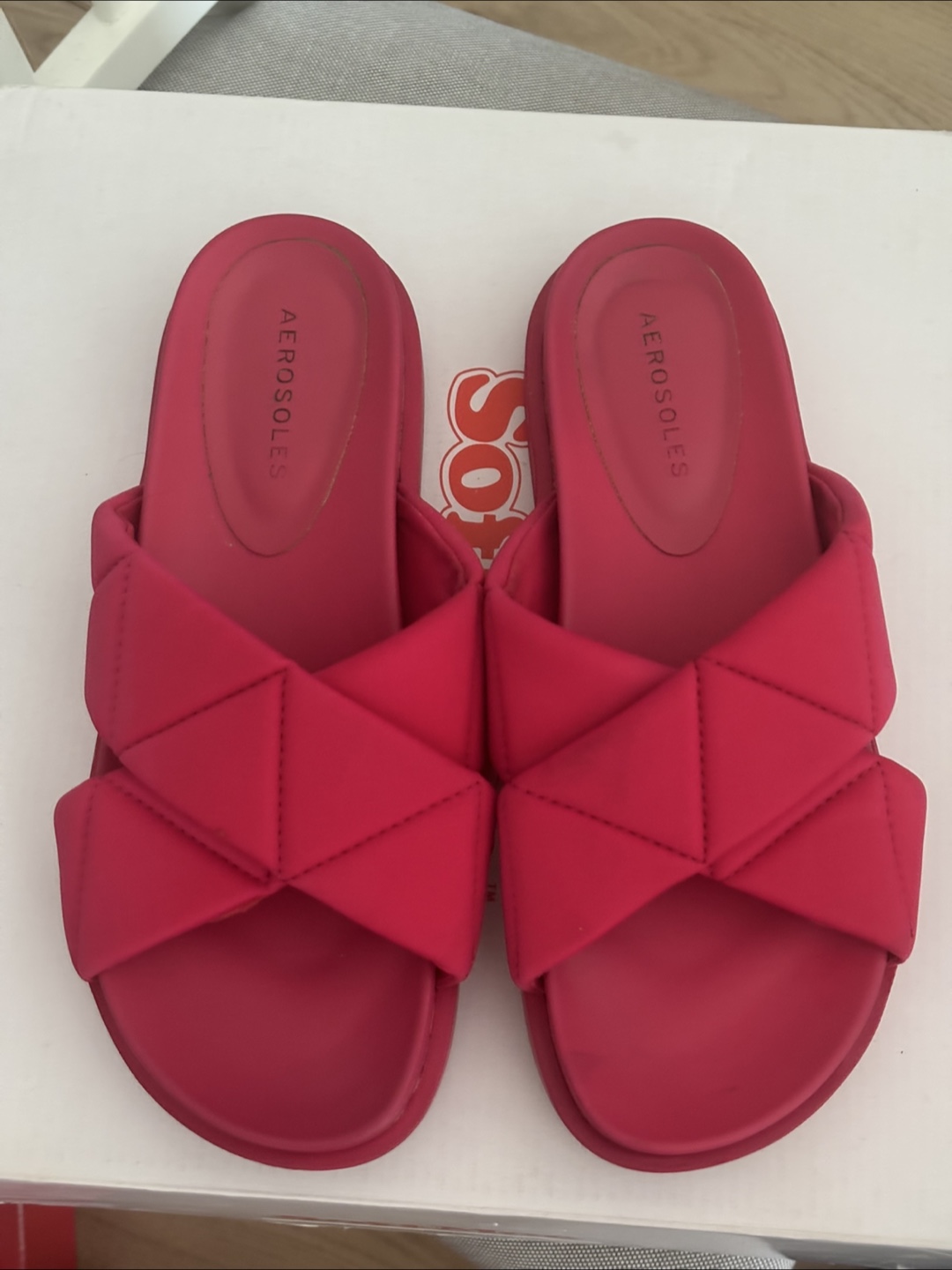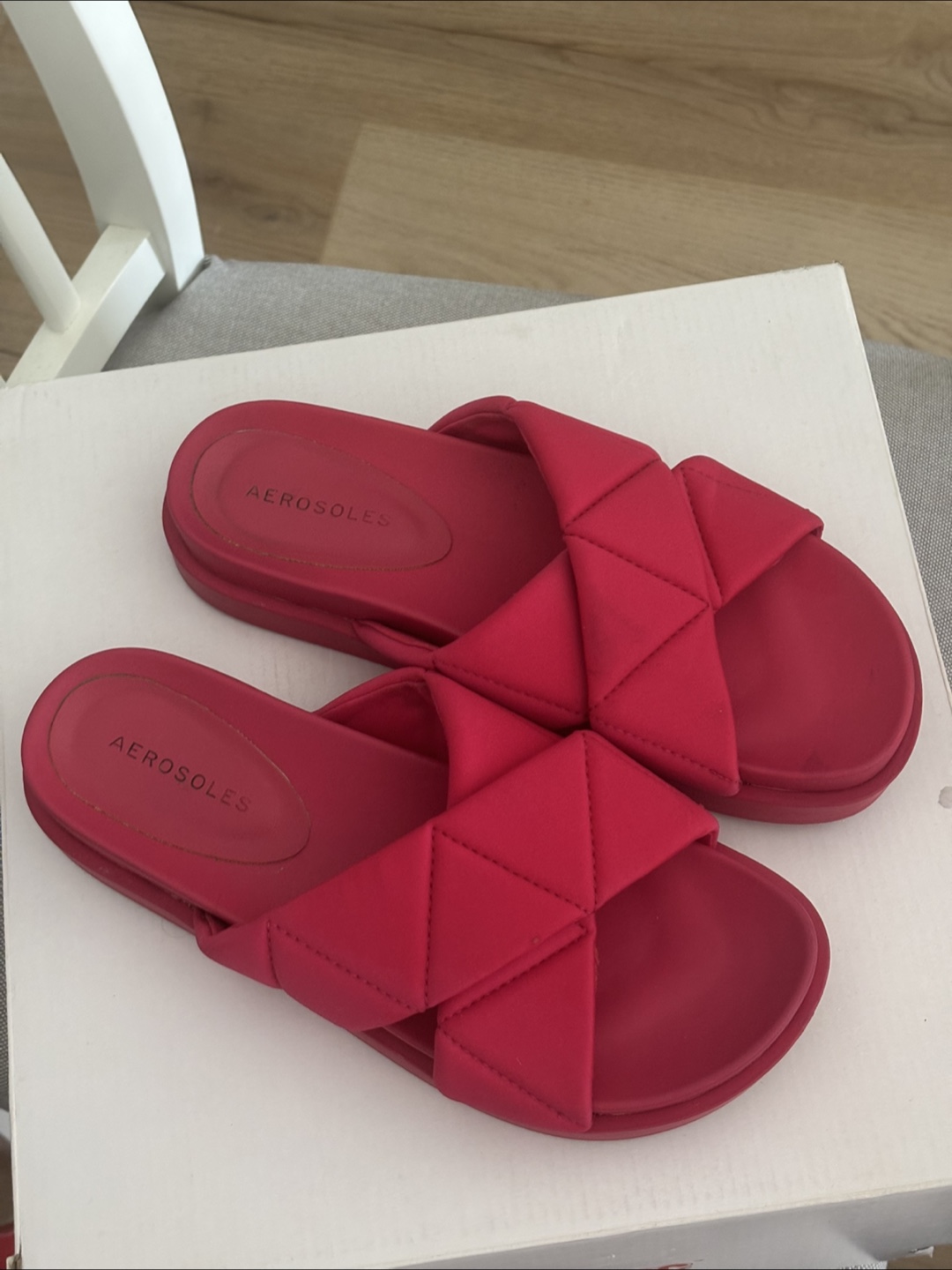 Cute red slides from Aerosoles! These are a size 8 and are in great condition. They feature a unique woven design across the top. Perfect for summer!