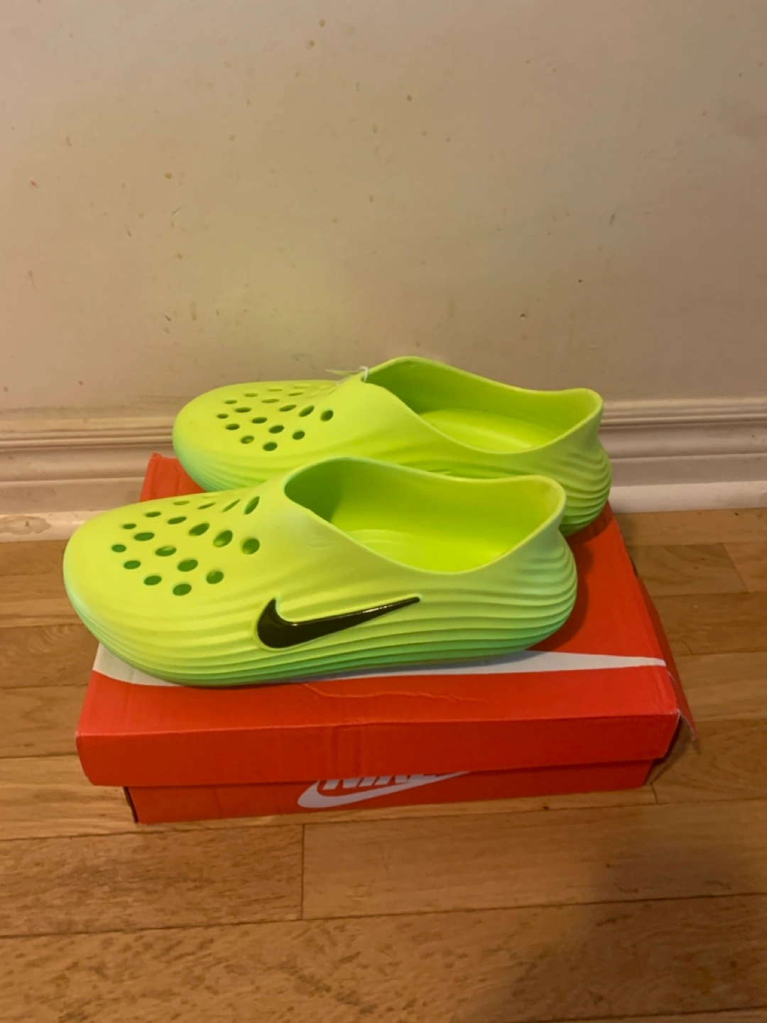 Selling a brand new pair of Nike ACG Clogs in size 11. They are a vibrant neon green colour and come with the original box. Perfect for summer!