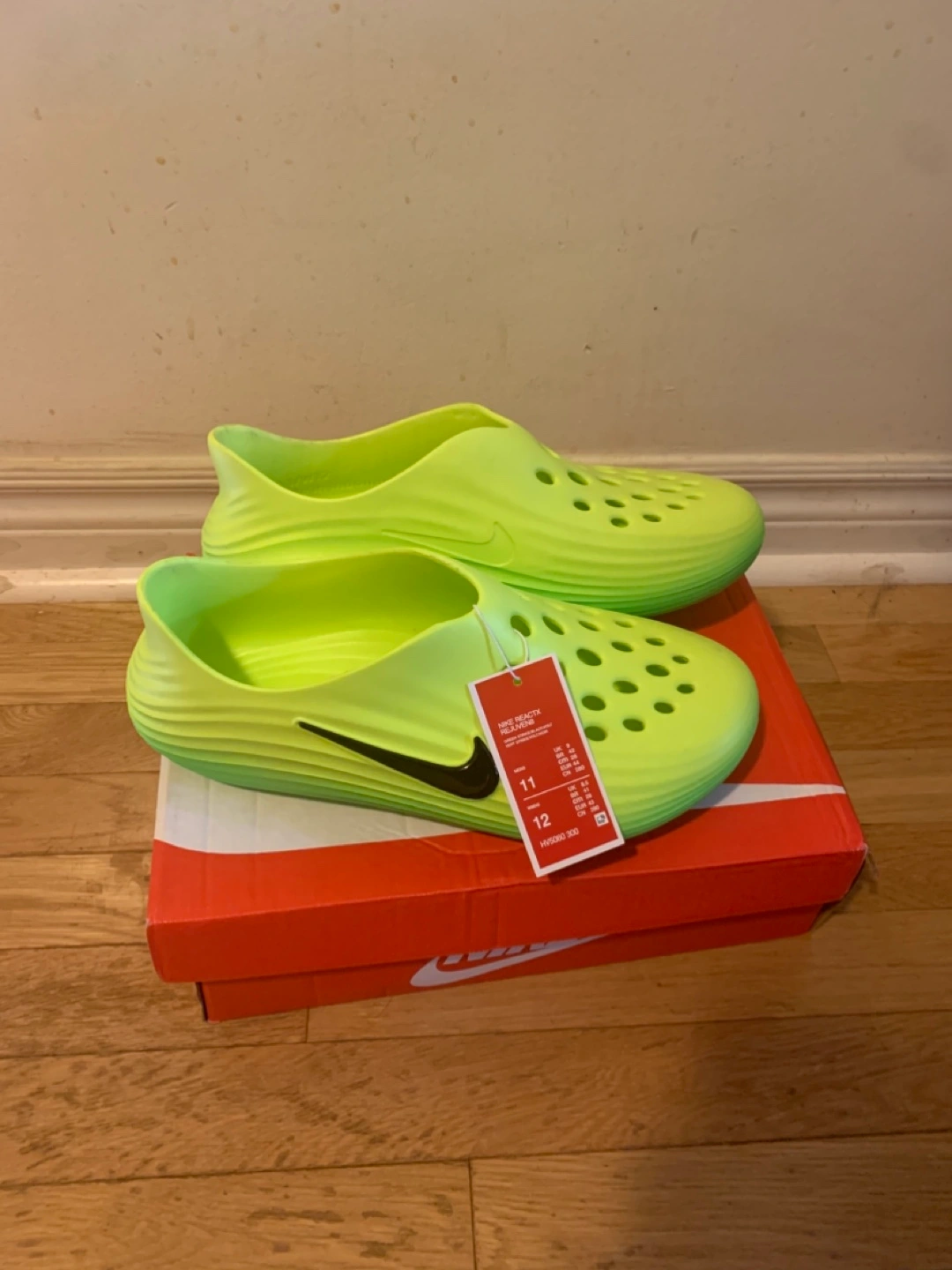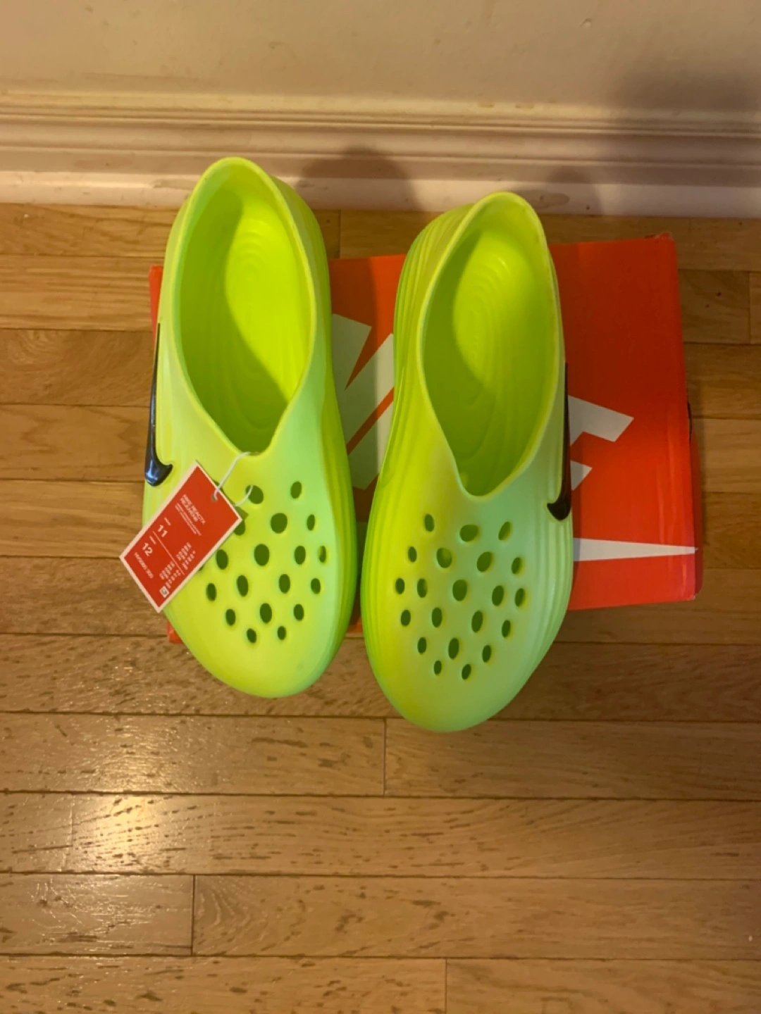 Selling a brand new pair of Nike ACG Clogs in size 11. They are a vibrant neon green colour and come with the original box. Perfect for summer!