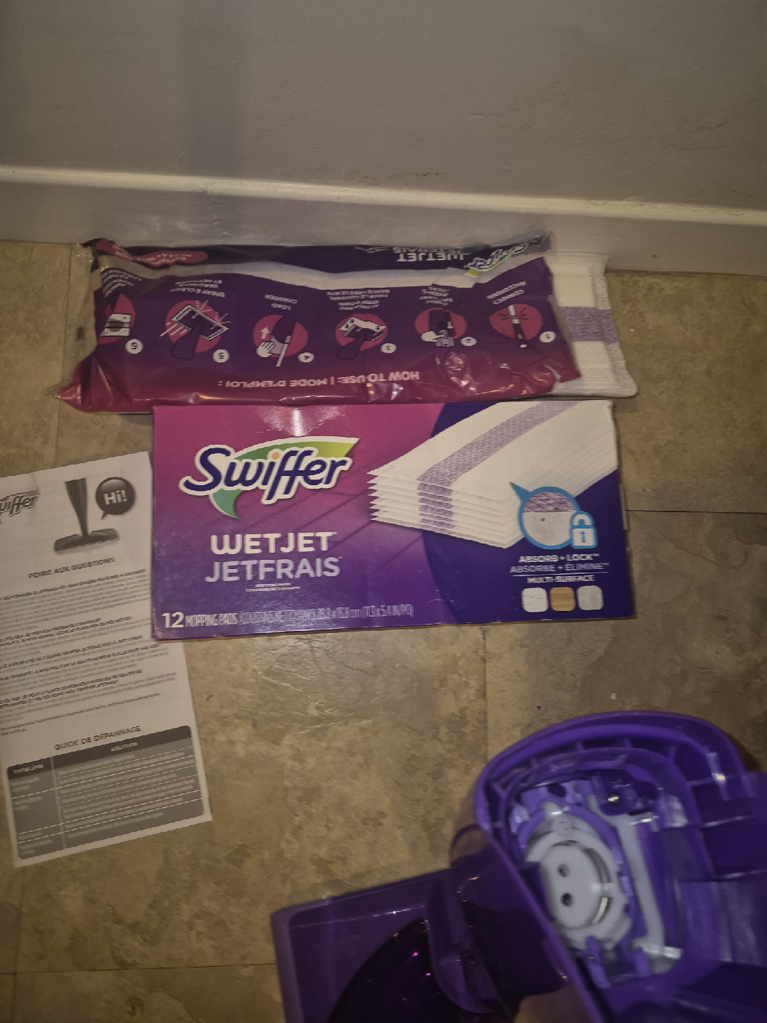 Selling a Swiffer WetJet mop in great condition! Comes with the mop itself, some cleaning pads, and the instruction manual. Perfect for quick and easy cleanups around the house