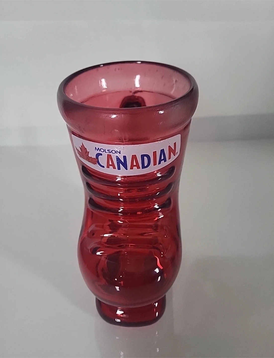 Molson Canadian Beer Glass Red Mug Ice Hockey Skate Boot Collectible Heavy 24oz It's a fun collectible item for any hockey fan!