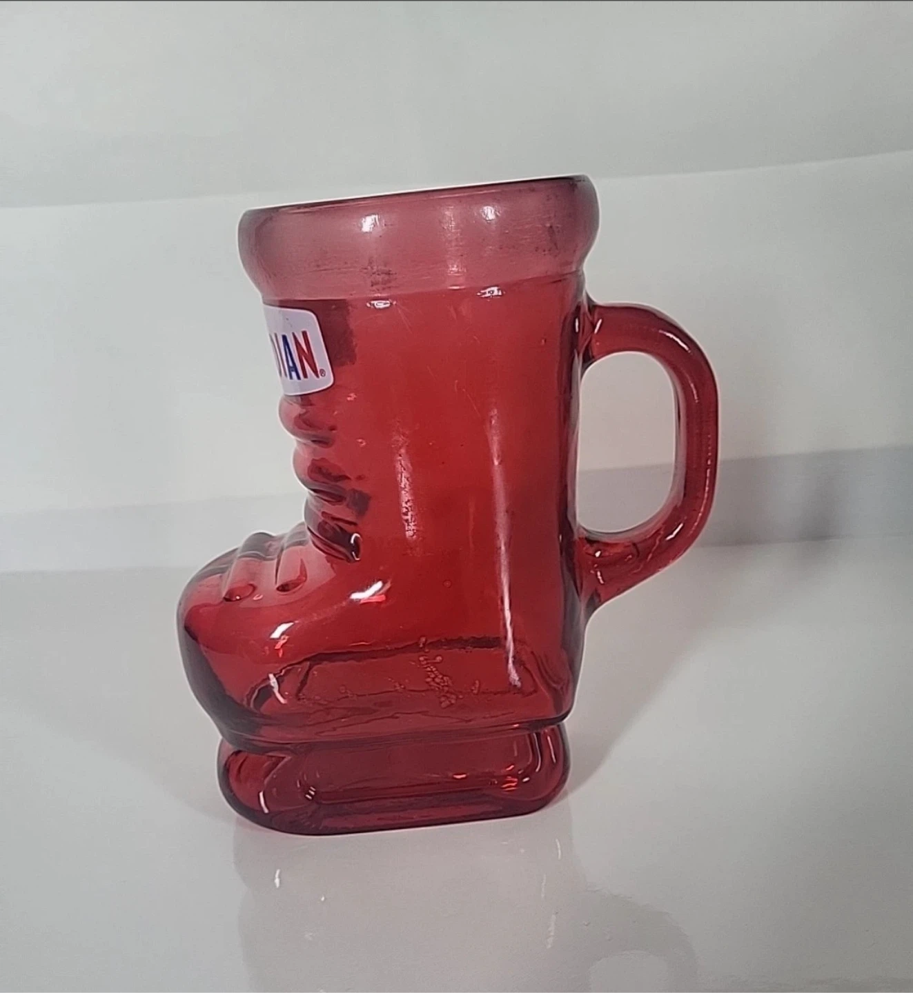 Molson Canadian Beer Glass Red Mug Ice Hockey Skate Boot Collectible Heavy 24oz It's a fun collectible item for any hockey fan!