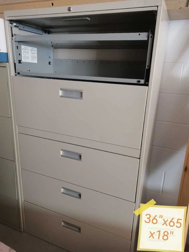 This used 5-drawer filing cabinet is perfect for organizing your documents and files with ease. It's a robust solution for any office or home workspace, offering ample storage in a vertical design. While it's been previously used, it remains fully functional and ready to serve your organizational needs.