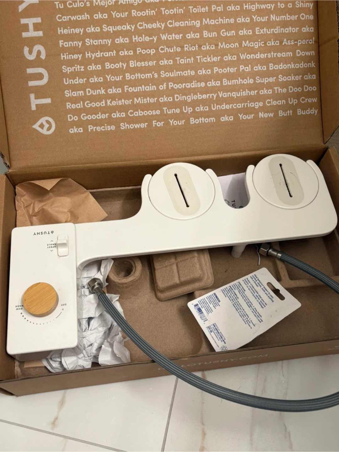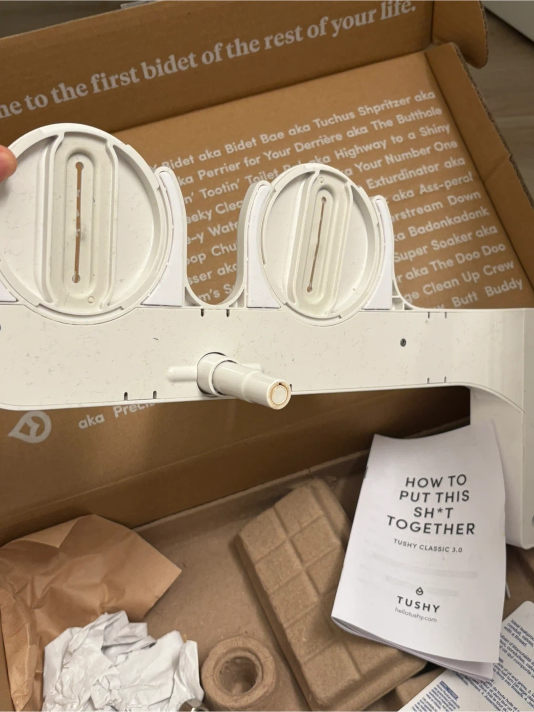 This is a life changer! Selling cause my new place has a weird toilet. TUSHY Classic 3.0 Bamboo bidet attachment. Includes original box and instructions.