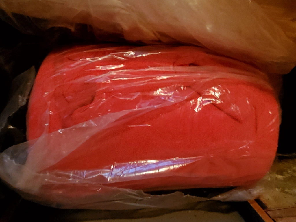 1 large roll of red fabric, pink, burgundy (upholstery large width), and 4 rolls of cream white cloth. Prefer to sell as one lot.