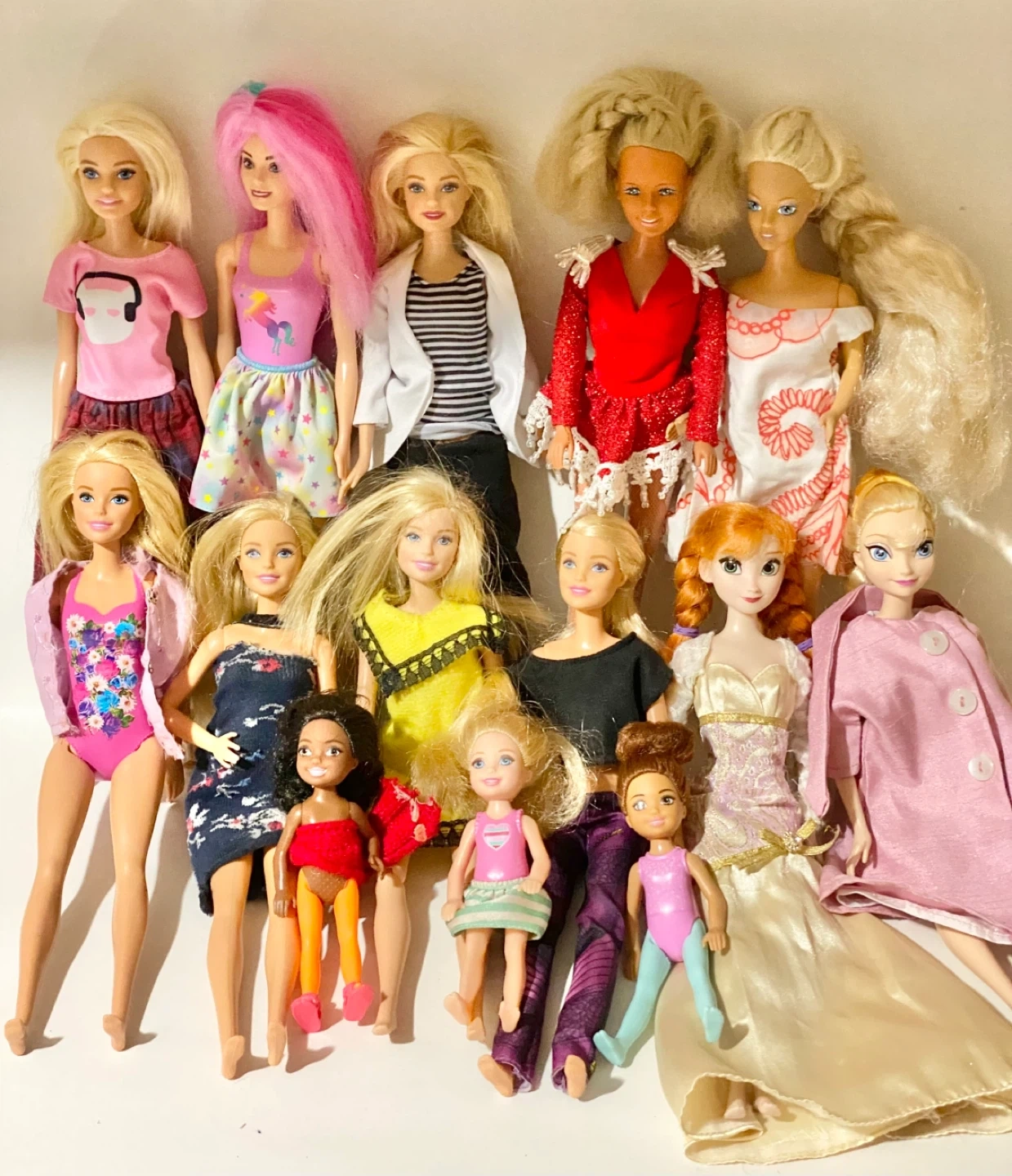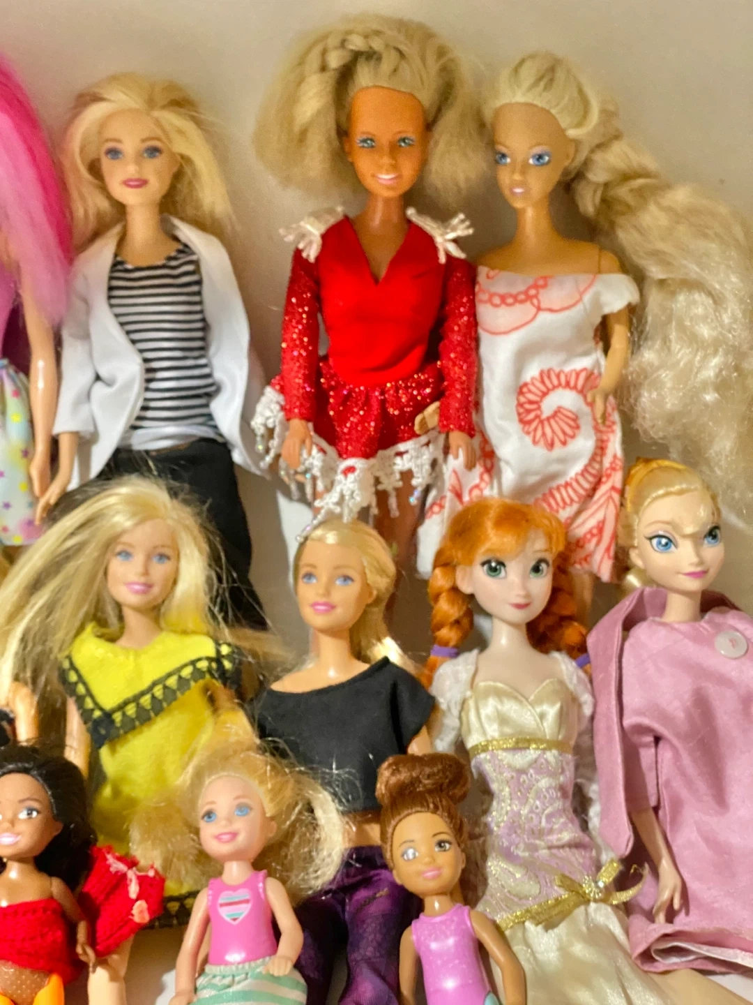 This lot includes a collection of assorted Barbie dolls and smaller fashion dolls with some flaws from play. They're dressed in various outfits and accessories. These dolls are great for imaginative play!