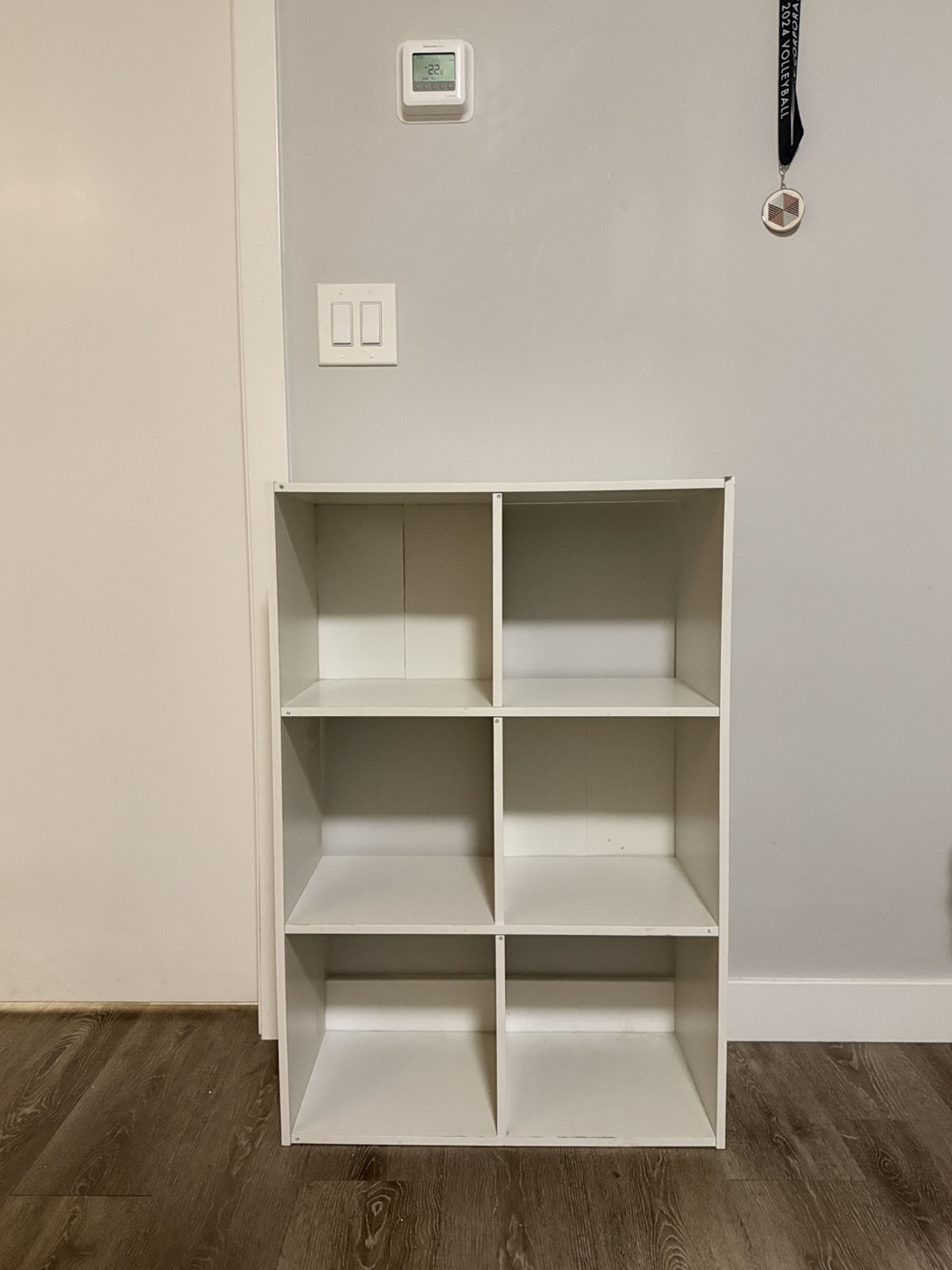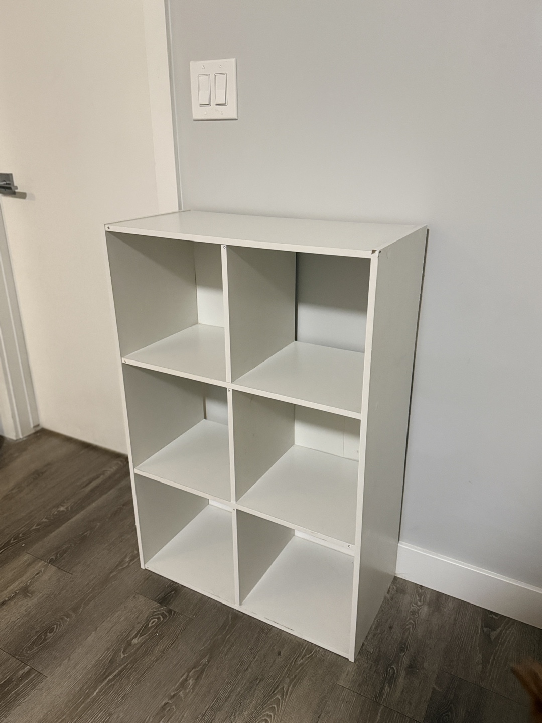 White 6 cube storage shelf.