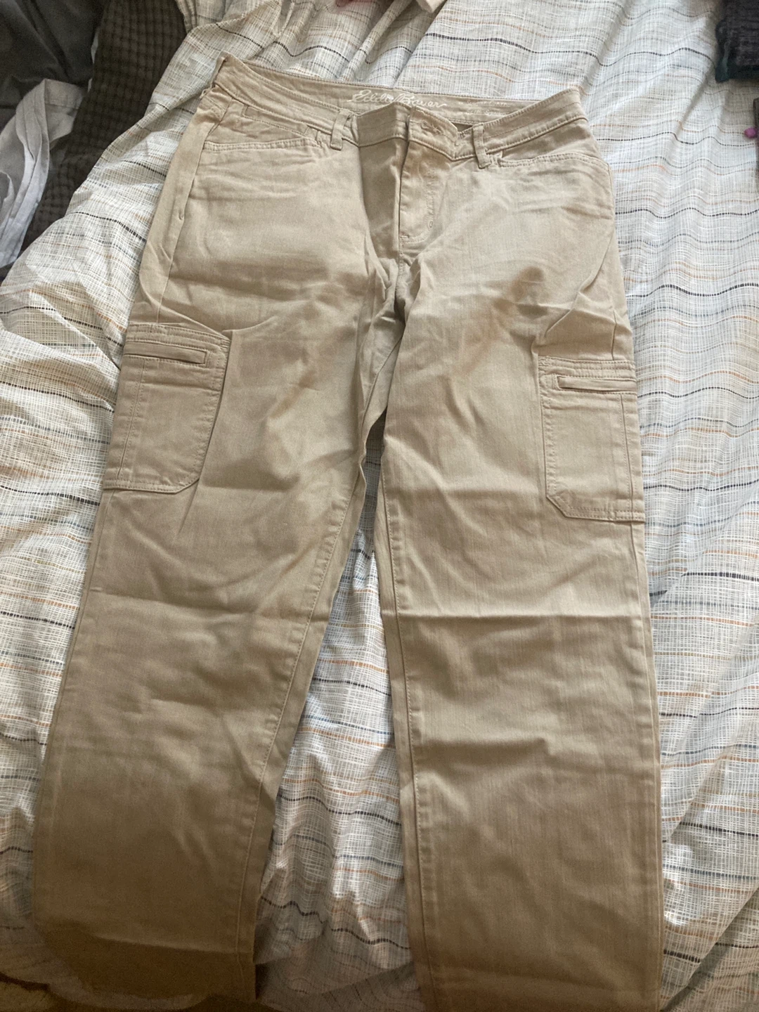 Buy & SellEddie Bauer Women's Khaki Cargo Pants Size 8Eddie Bauer Women's Khaki Cargo Pants Size 8$4These Eddie Bauer cargo pants are a versatile khaki colour. They feature multiple pockets for convenience. Size 8.ConditionNewSize8BrandEddie BauerWHERE TO MEETCheck LocationView MapSELLERverifiedAveryWallace Emerson1044 reviews1 chats·1 favorites·36 viewsSEND CHAT TO SELLERHi Avery! I’m interested in your listing.Hi Avery! I’m interested in your listing.Get the Karrot app to chatSign In to chat