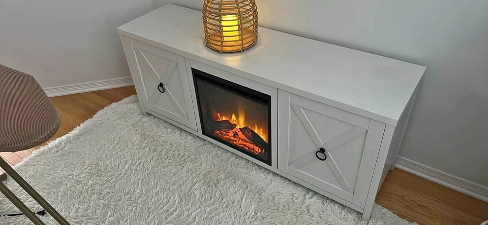 Beautiful white wood electric fireplace and heater. Can be used as TV stand. A lot of space to also store PlayStation or movies. Purchase for $590. Selling it because I’m moving.