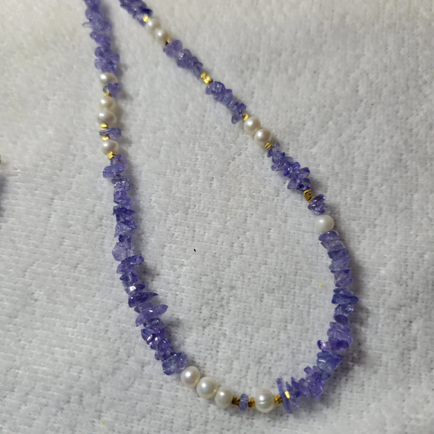 Beautiful 100 % natural tanzanite gemstone mixed with pearl beads very elegance set to any outfit !