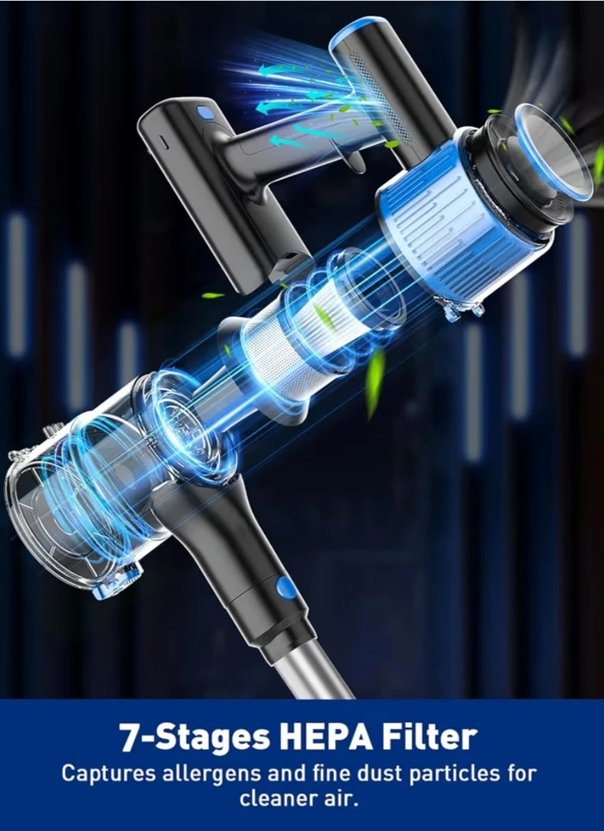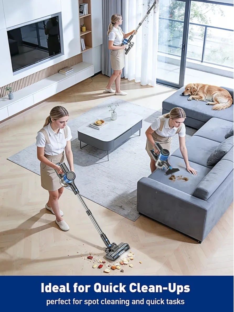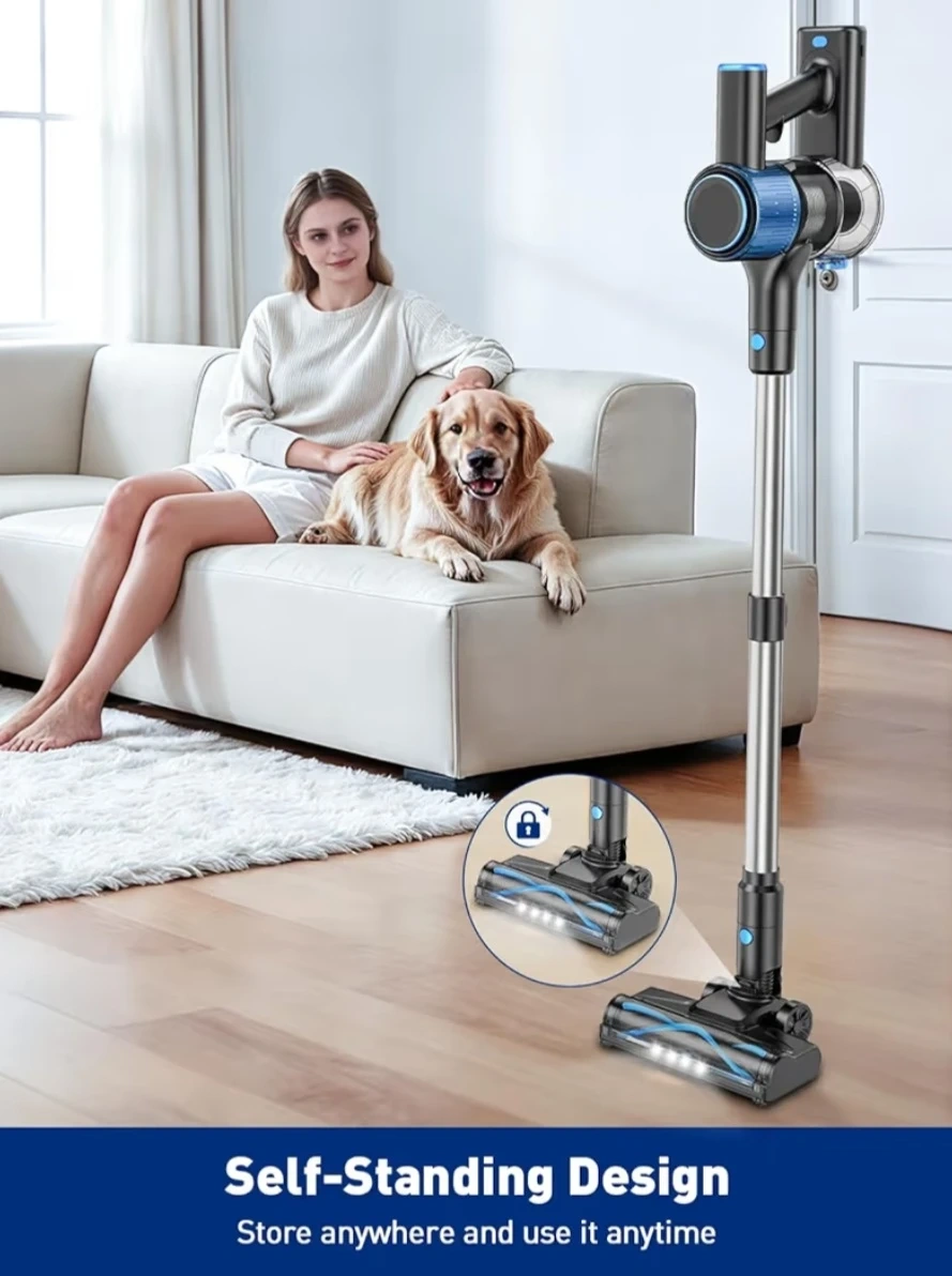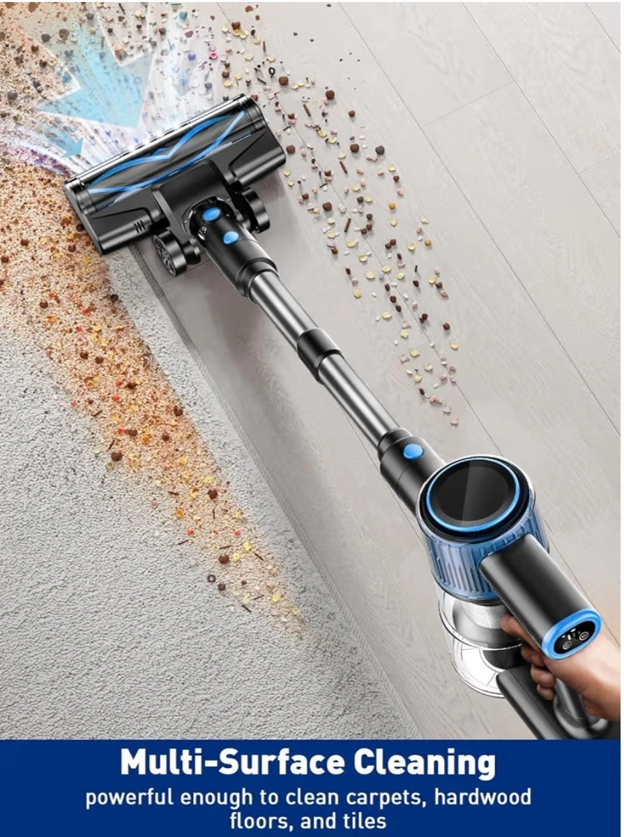 Cordless Vacuum Cleaner, 8 in 1 Powerful Suction Lightweight Vacuum Cleaner for Home with Self-Standing & LED Display, 3 Suction Modes, 45Mins Detachable Battery Vacuum for Hard Floor Carpet Pet Hair