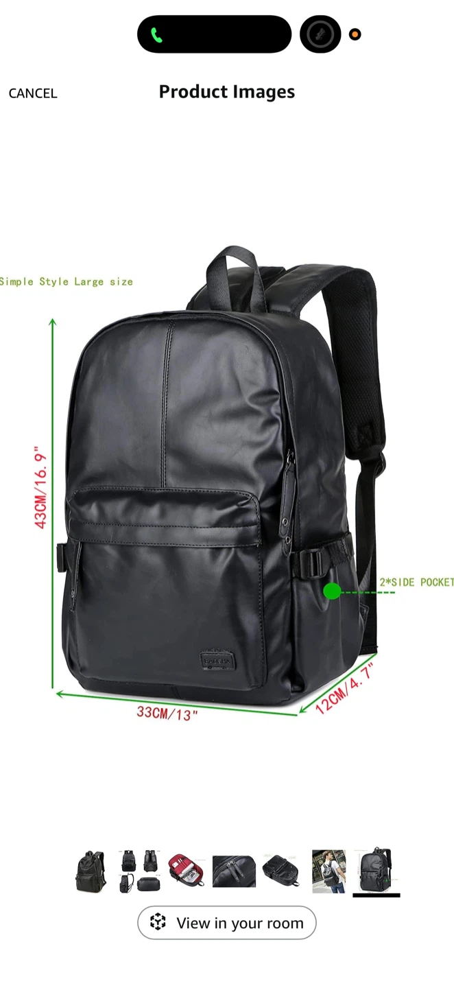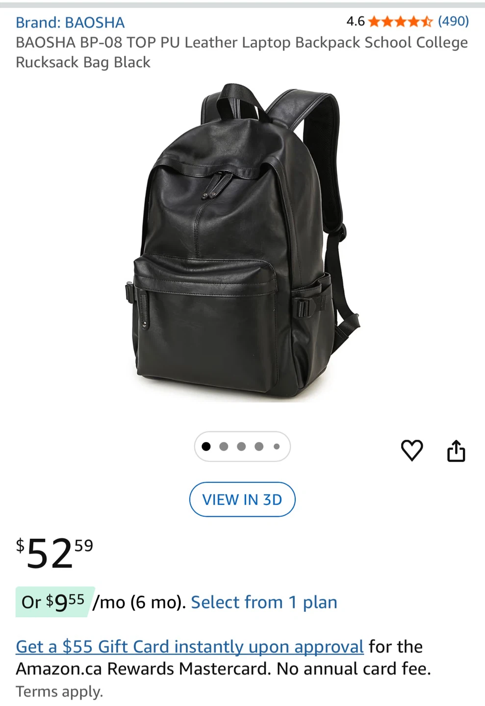 This BAOSHA backpack is made from black PU leather. It's a large size backpack with a 15.6" laptop compartment and two side pockets. It's great for school or college.