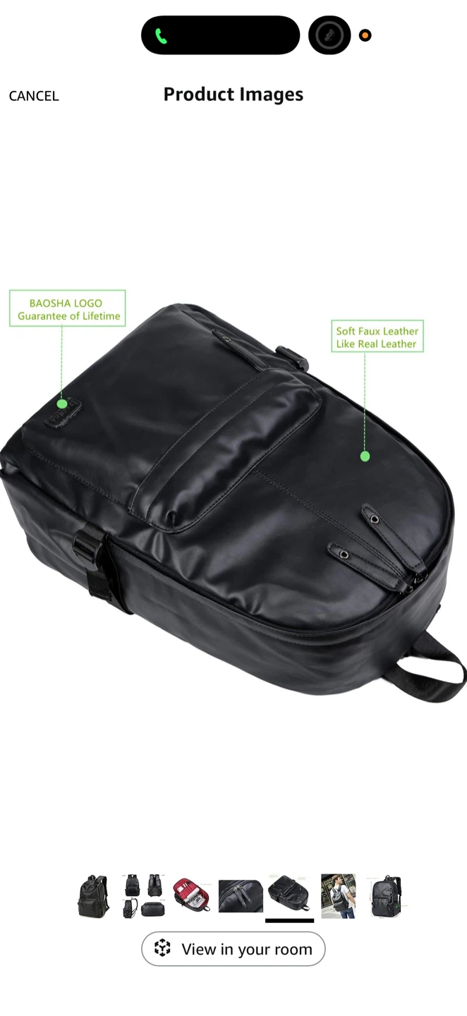BAOSHA BP-08 Black PU Leather Laptop Backpack