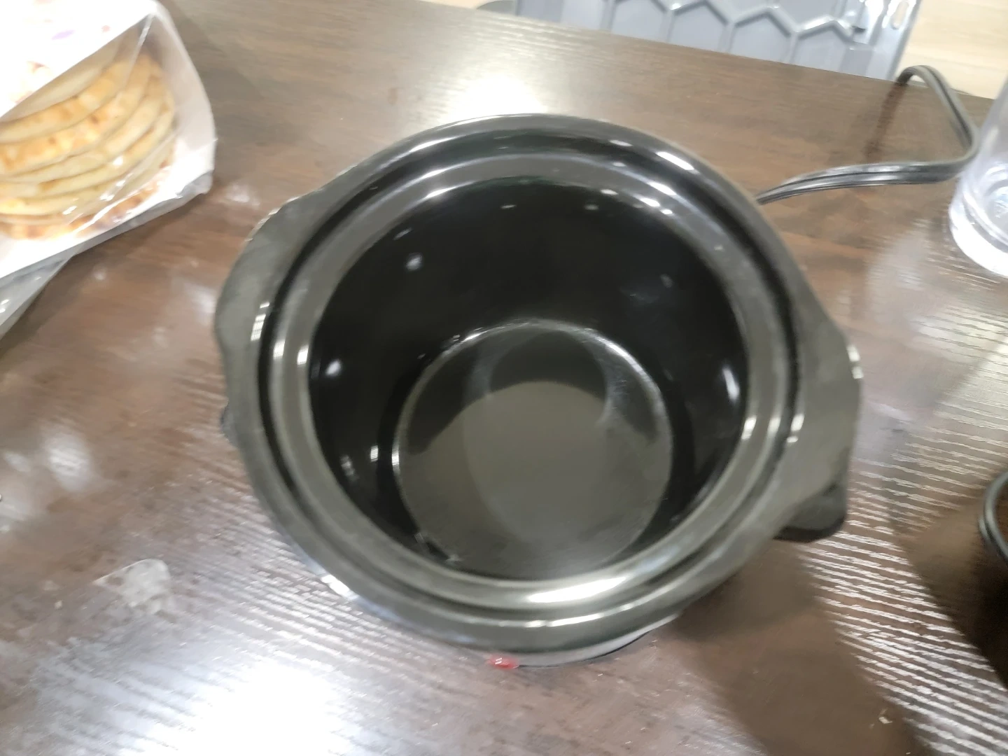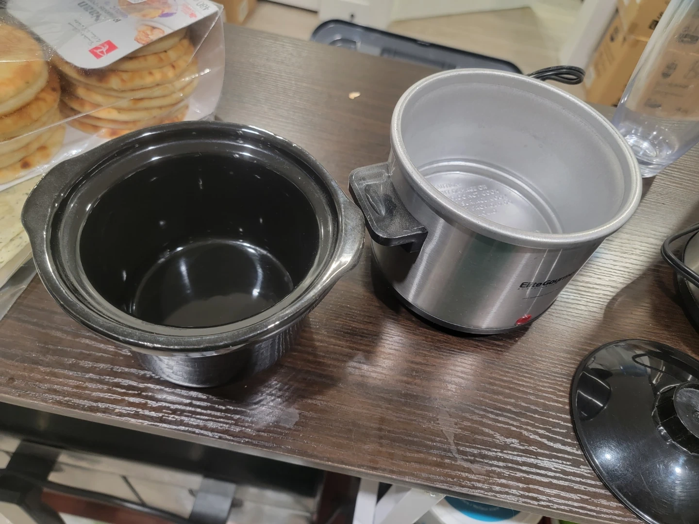 This is an Elite Gourmet slow cooker. It has a removable ceramic pot. Perfect for making single serve warm meals.