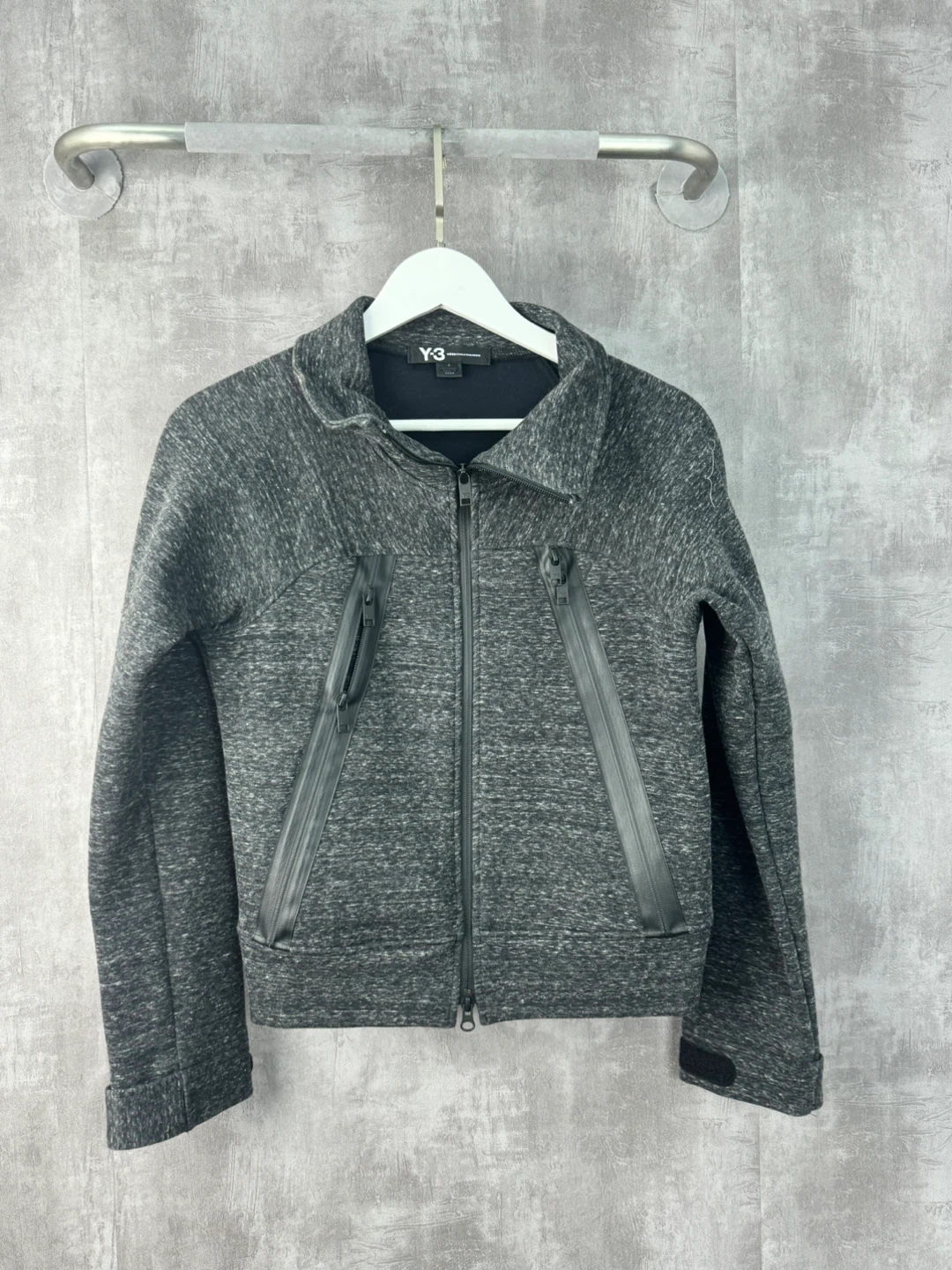 Elevate your look with this Y-3 charcoal jacket. Features sleek zip details and a modern design.