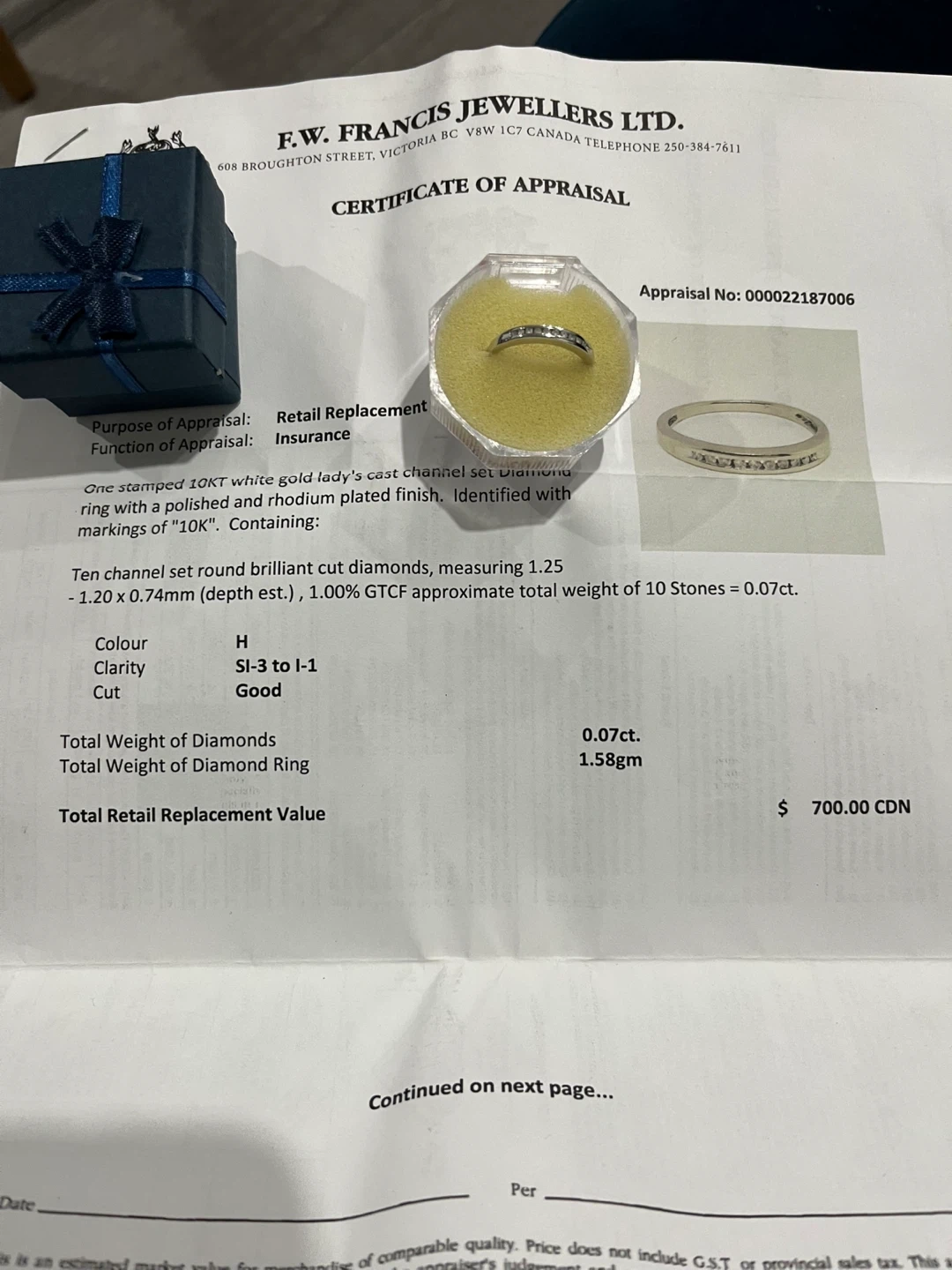The total retail replacement value is $700 CDN
