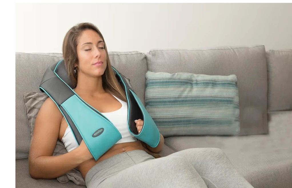 This Shiatsu massager features 8 deep-tissue massage roller balls with bi-directional kneading action. It has a heating function and adjustable intensity settings for a customizable massage experience. The breathable mesh fabric ensures comfortable use on your neck, shoulders, back, arms, or legs.