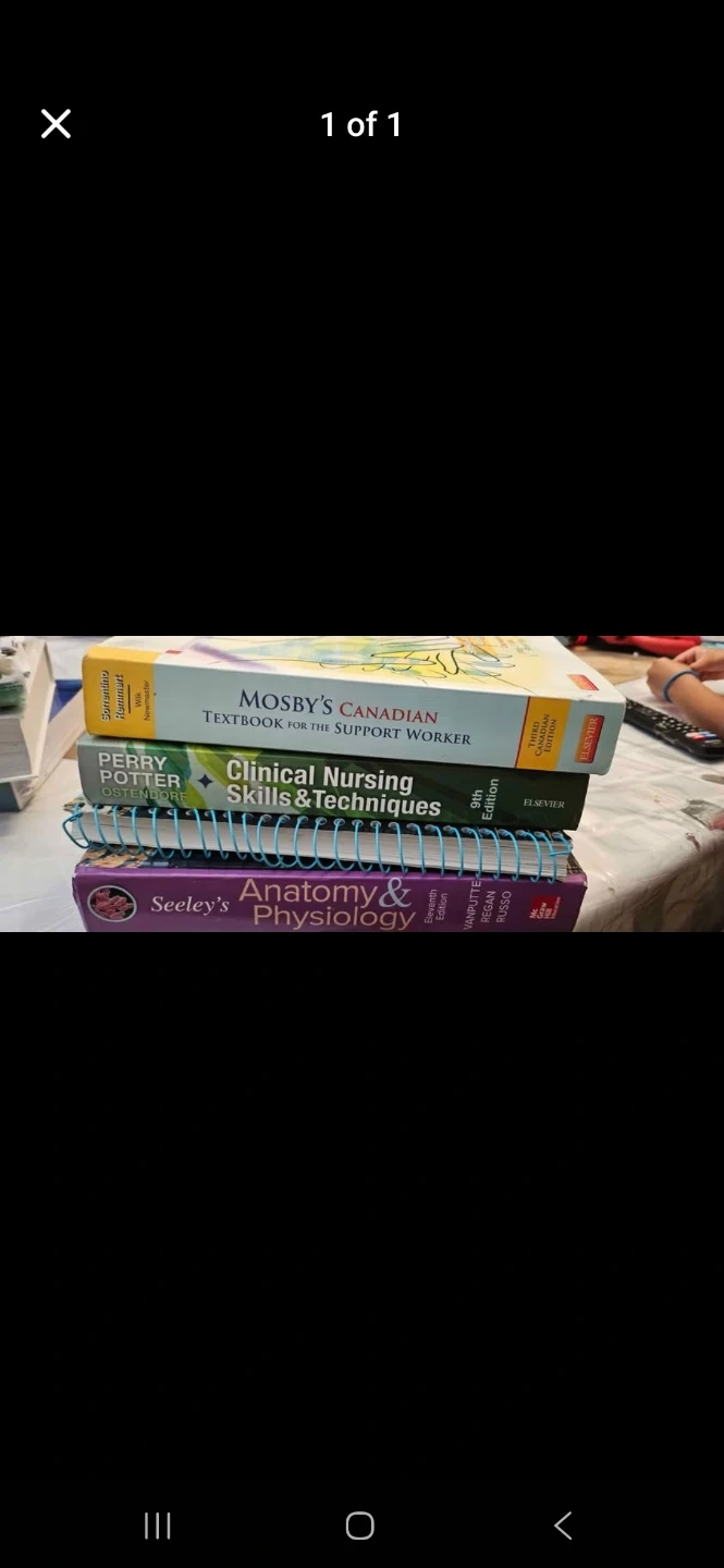 Bundle of three Canadian nursing textbooks. Includes Mosby's Canadian Textbook for the Support Worker, Perry & Potter's Clinical Nursing Skills & Techniques (9th ed.), and Seeley's Anatomy & Physiology (11th ed.). Perfect for students in nursing or support worker programs.