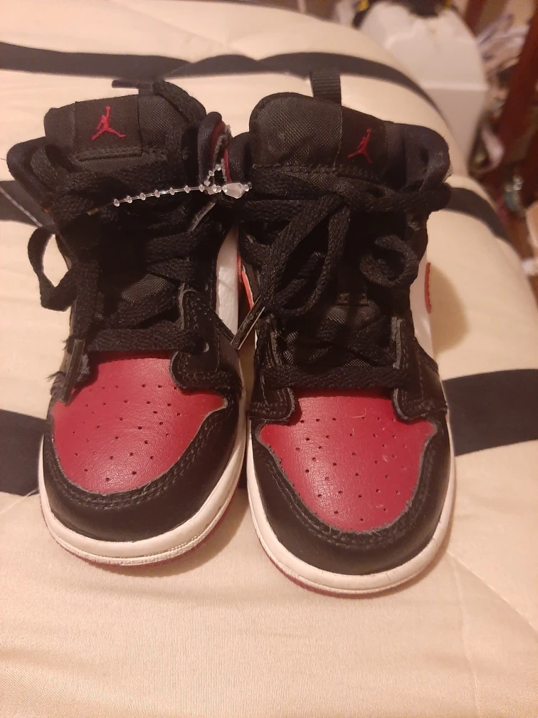 Selling a pair of adorable Nike Air Jordan 1 Crib Booties for babies! They're in great condition and perfect for your little one's first steps. These iconic shoes feature the classic Air Jordan design with a soft and comfortable fit for tiny feet
