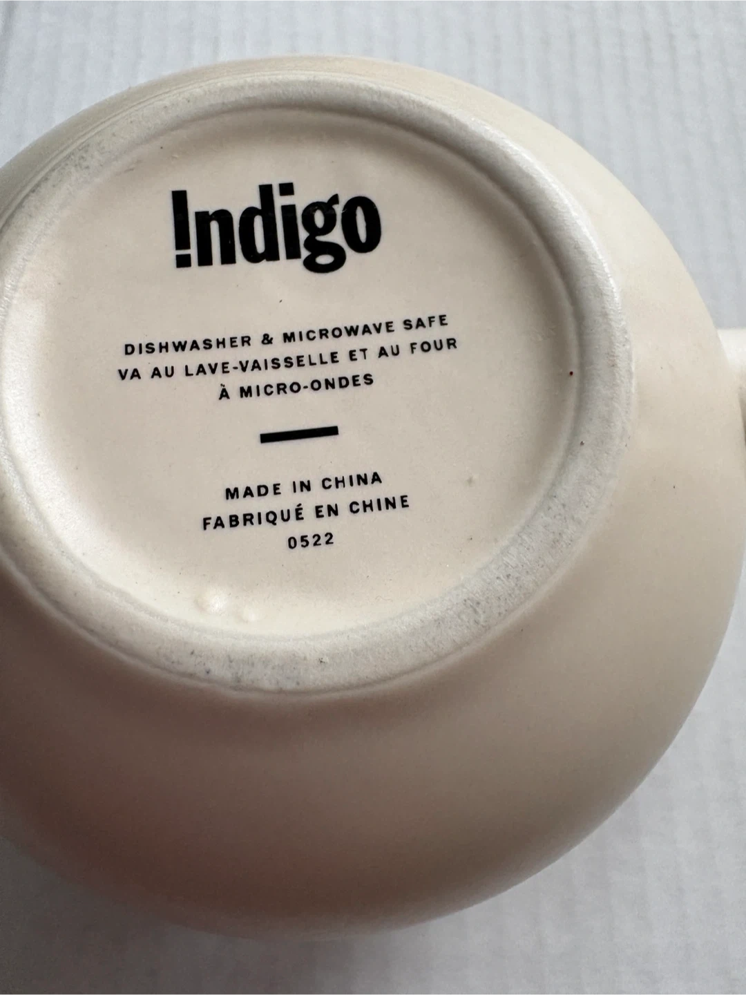 White Indigo mug with a "ISBN thinking about you" graphic featuring books. It's dishwasher and microwave safe. Made in China.