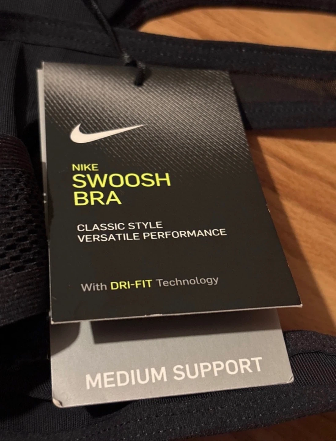 I'm selling a new Nike Swoosh Bra, perfect for medium support during workouts with DRI-FIT technology! This stylish and functional sports bra is designed to keep you comfortable and supported, whether you're hitting the gym or going for a run. I never got around to using it, so it's in pristine, new condition!