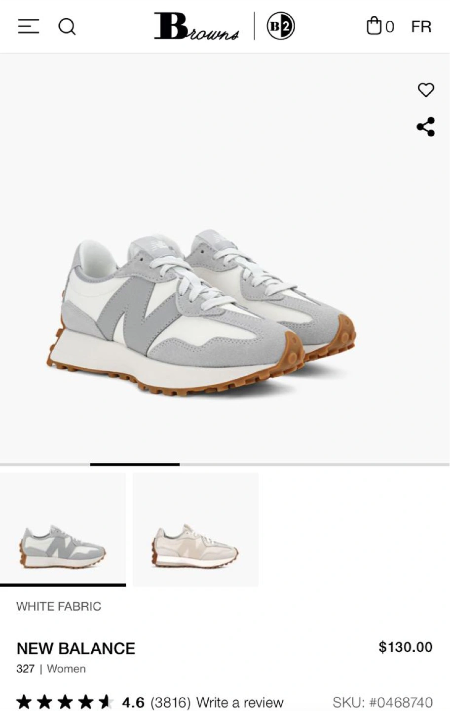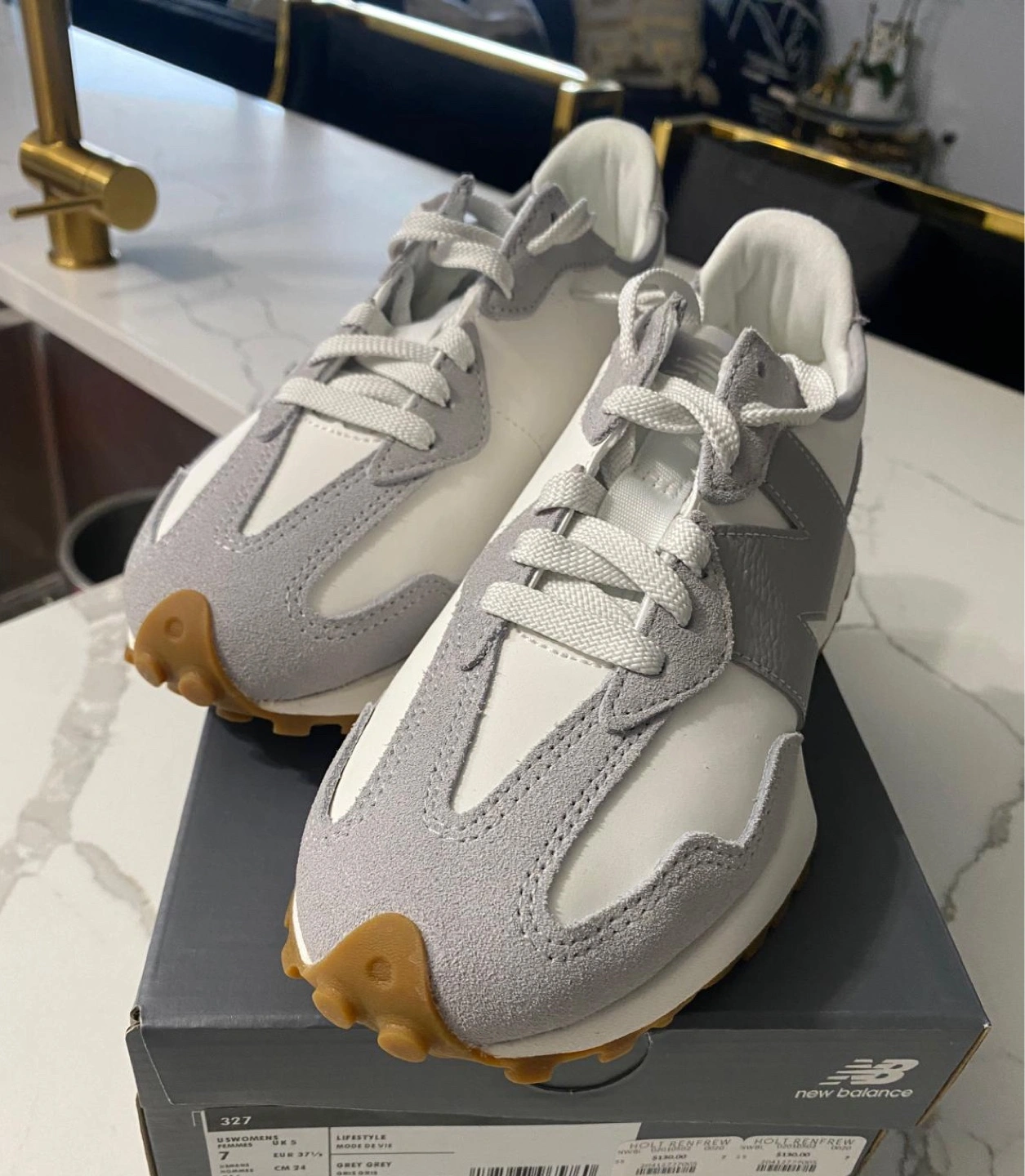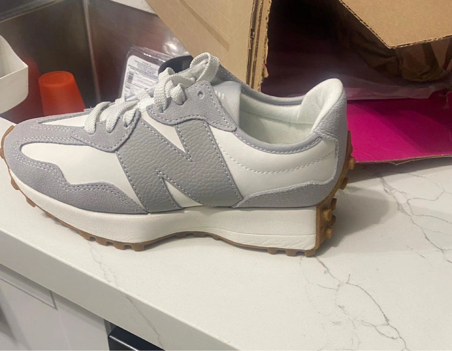 New Balance 327 sneakers. Grey and white colour scheme. Women's size 7, Chunky sole.