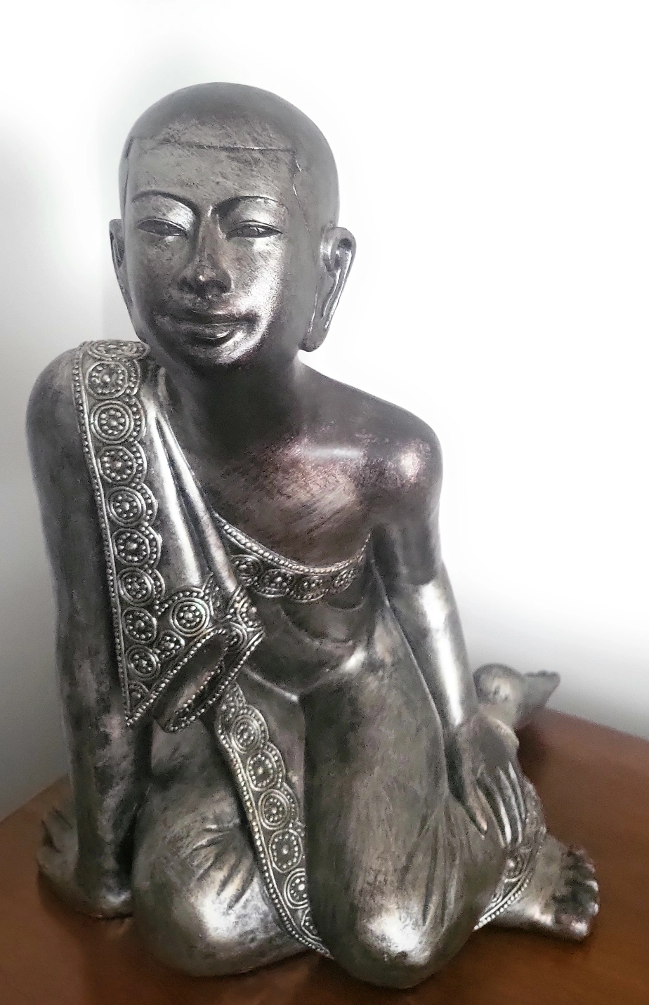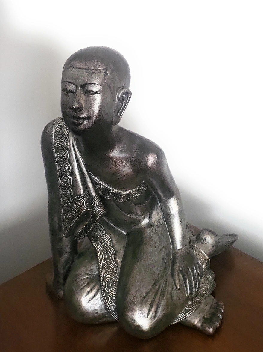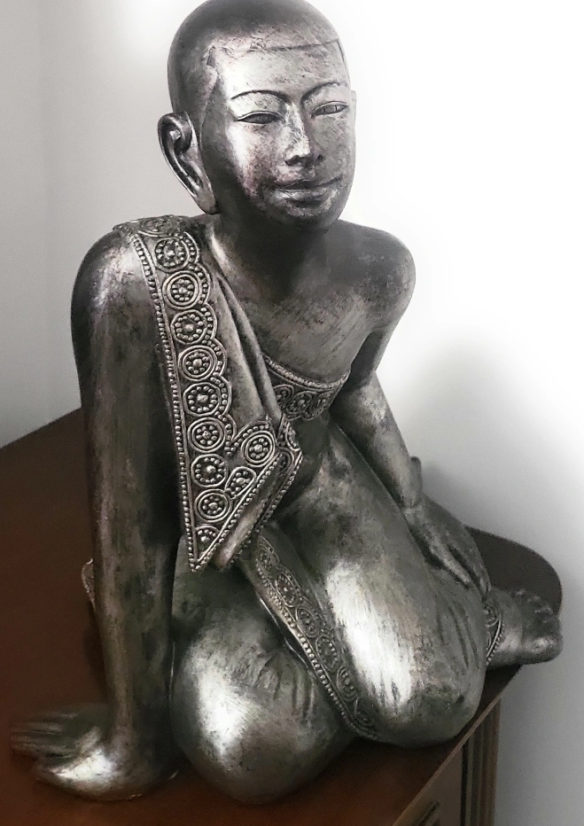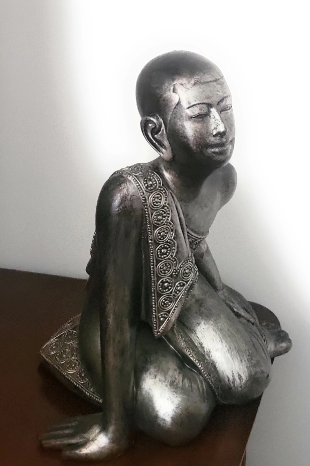 A lovely Buddha statue with intricate detailing on the robe and a serene expression. Perfect for adding a touch of peace and tranquility to any room in your home