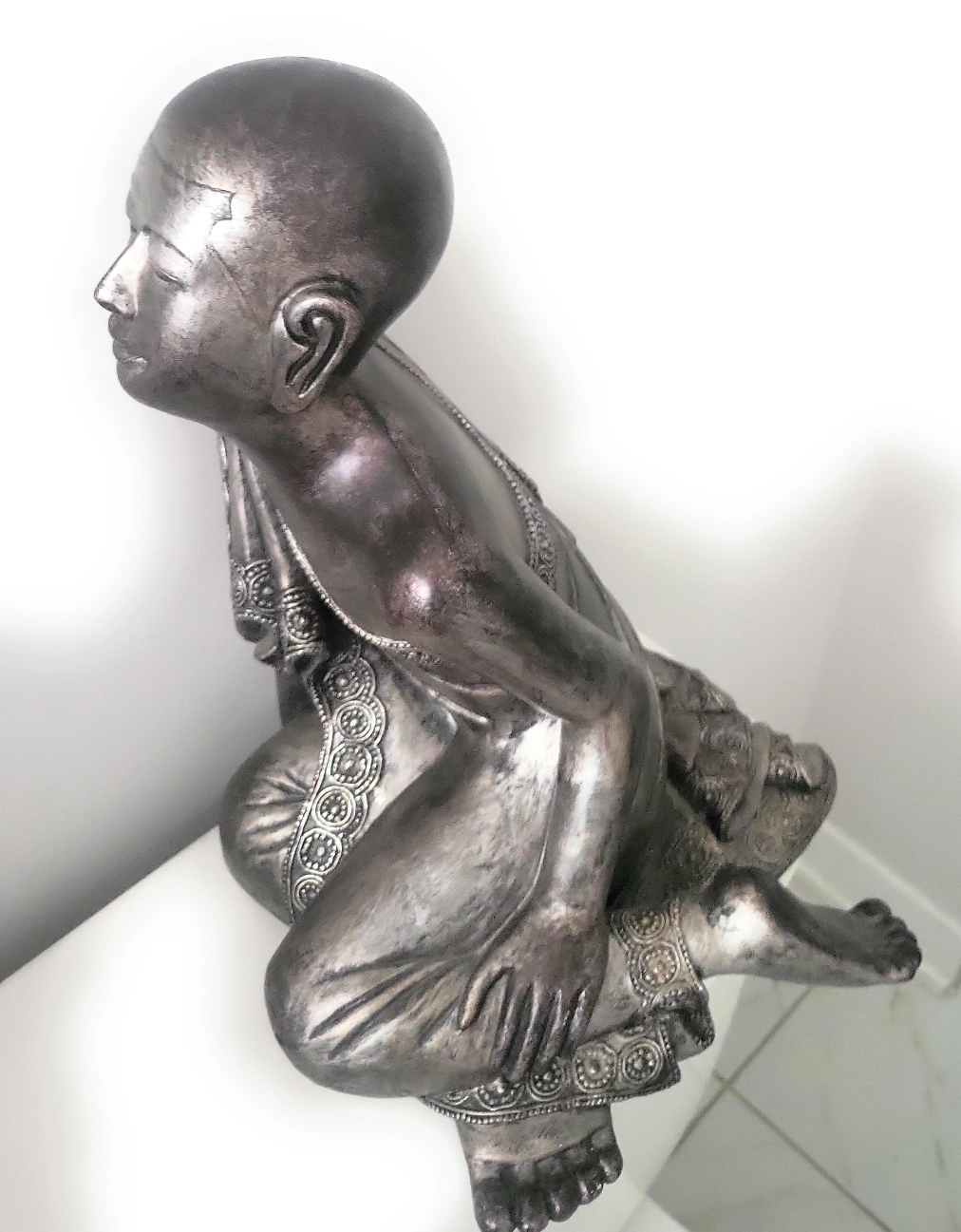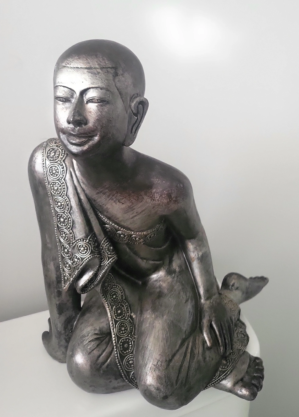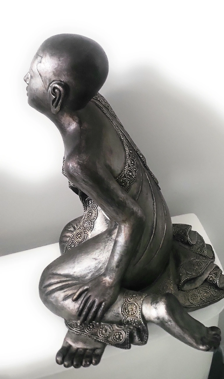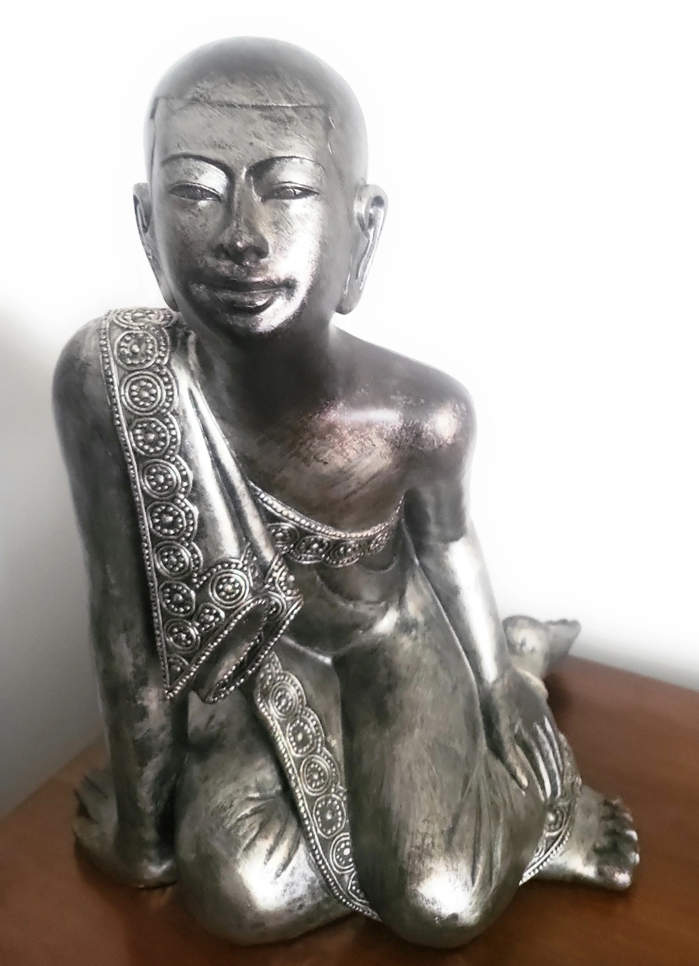 A lovely Buddha statue with intricate detailing on the robe and a serene expression. Perfect for adding a touch of peace and tranquility to any room in your home